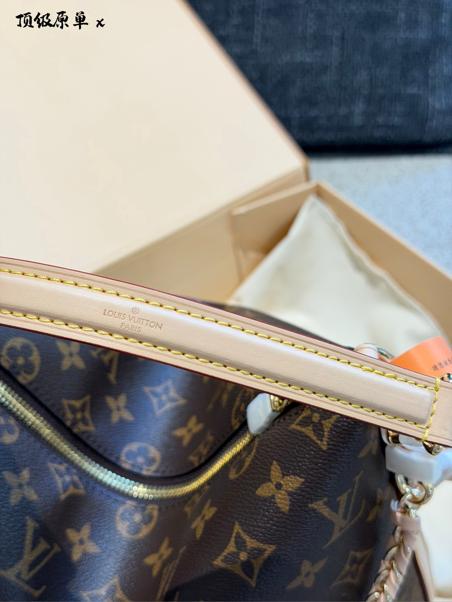LV Multi💰ass手袋💰480 LV Multi💰ass手袋灵感来自Ex💰ress手袋,采用经典Monogram帆布牛皮饰边,撞色设计超有质感计。包身随性垂坠,金属件点缀,搭配可拆卸编织链条,手提、肩背、斜挎都OK!尺寸适中,拉链闭合更安全,通勤休闲都能轻松驾驭~复古与现代结合,时髦又实用!了26×10×30图片包装