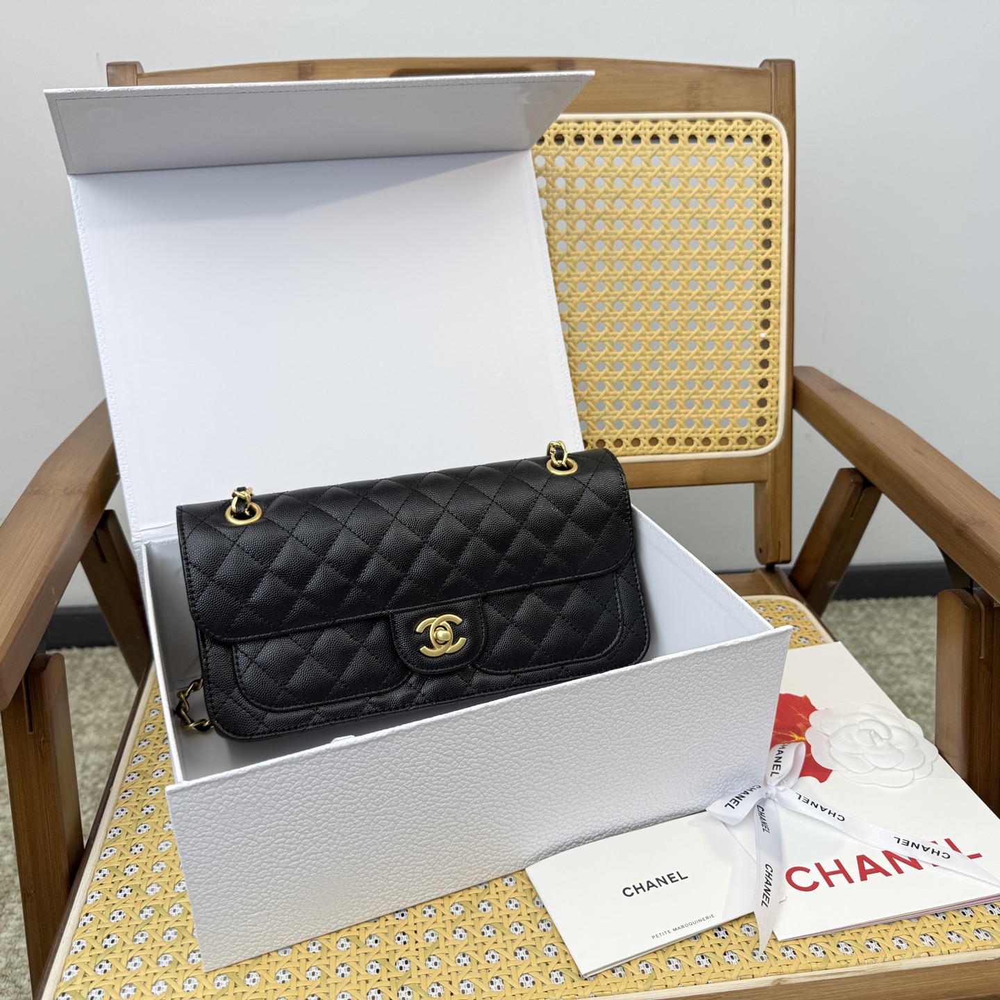 (全套包装⚠️)💰370 鱼子酱 香奈儿 𝐂𝐡𝐚𝐧𝐞𝐥 25B新款黑金复古法棍包 链条邮差包口盖包 好浓郁的𝐕𝐢𝐧𝐭𝐚𝐠𝐞气息 仿佛又回到了𝟗𝟎年代〰️ 黑色长方形的外观,也被称为法棍 一边的链条垂下来也可以当装饰 随便一背都很有气场 尺寸:26.14cm