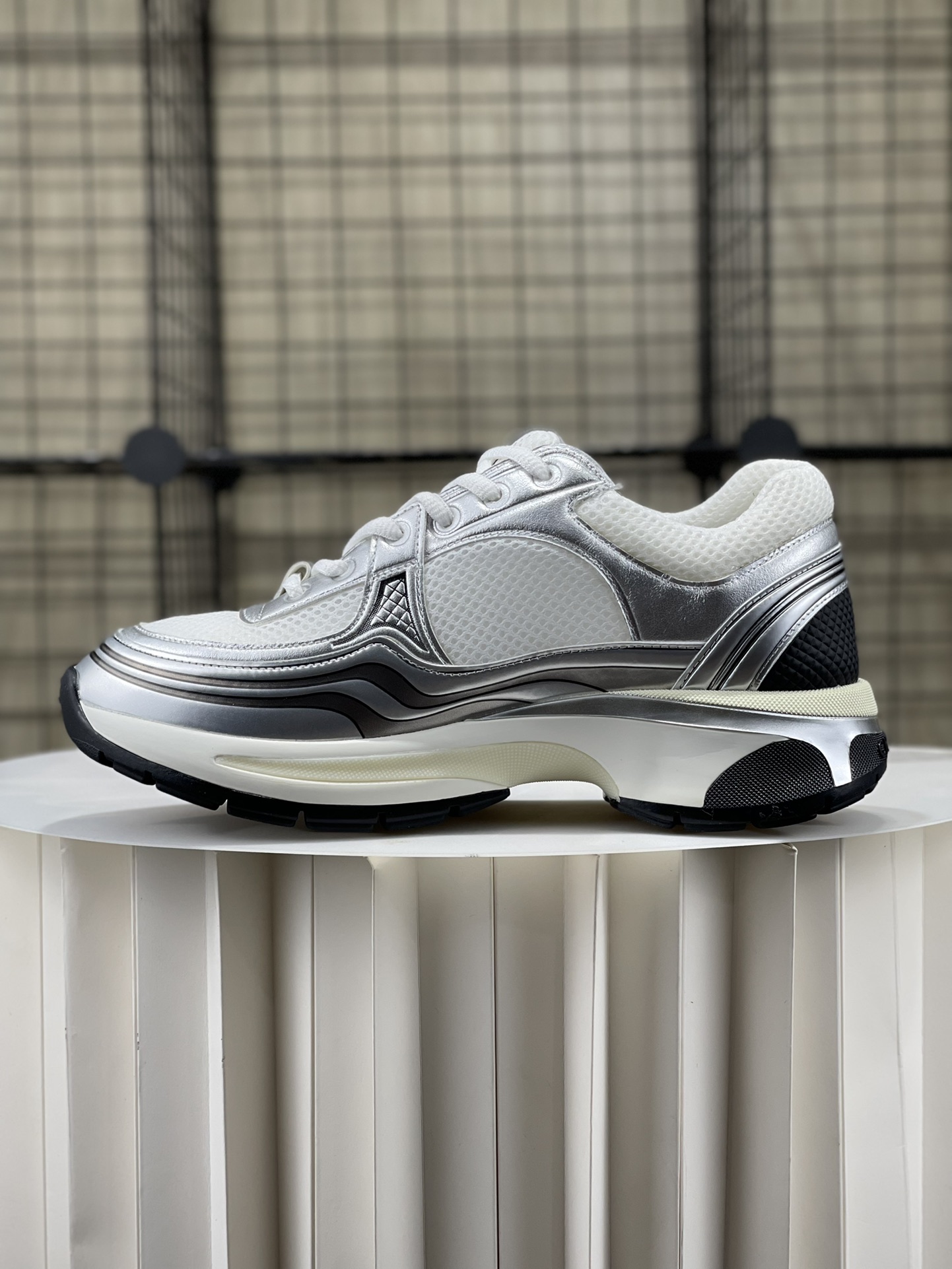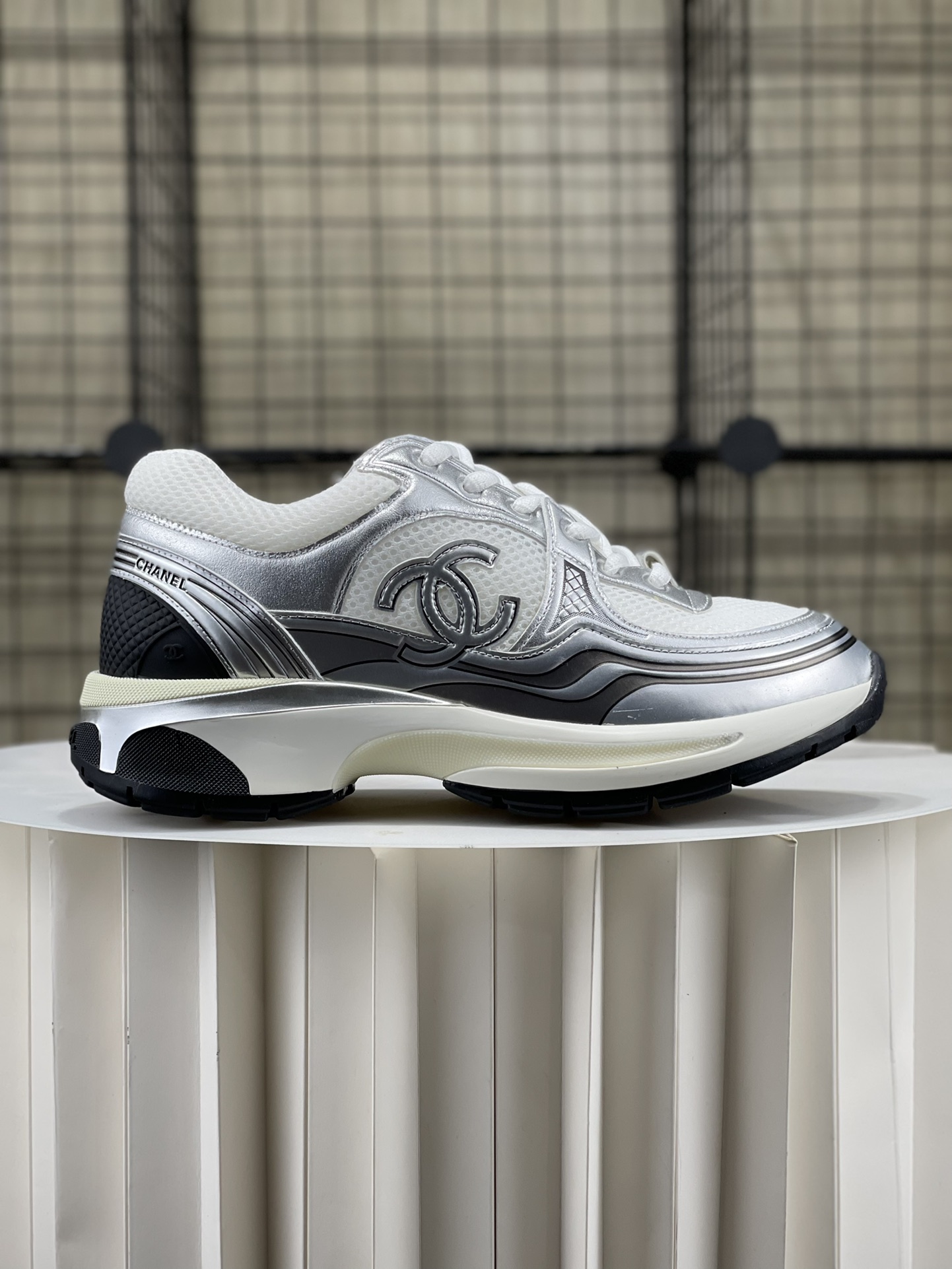 Chanel香奈儿23SS 早春度假系列 小香 金属 休闲 运动鞋 金 银角大王 最新国外走秀系列Chanel 香奈儿 2023 早春系列在世界第二小国举办。系列以摩纳哥国际化的海滨生活方式为灵感,从F1赛车赛道到海滩泳池,从赌场到网球场,打造了多样且别致的全新系列赛车手的头盔,连身套装等元素经过重新诠释更显时尚感 配送专柜精美包装🛍📦 ▪面料: 原版进口金属牛皮+科技面料 ▪内里:原版定制透气网里 ▪鞋底:原版开模超轻发泡组合大底 ▪底厚:3.5CM ▪Size: 女款35-40