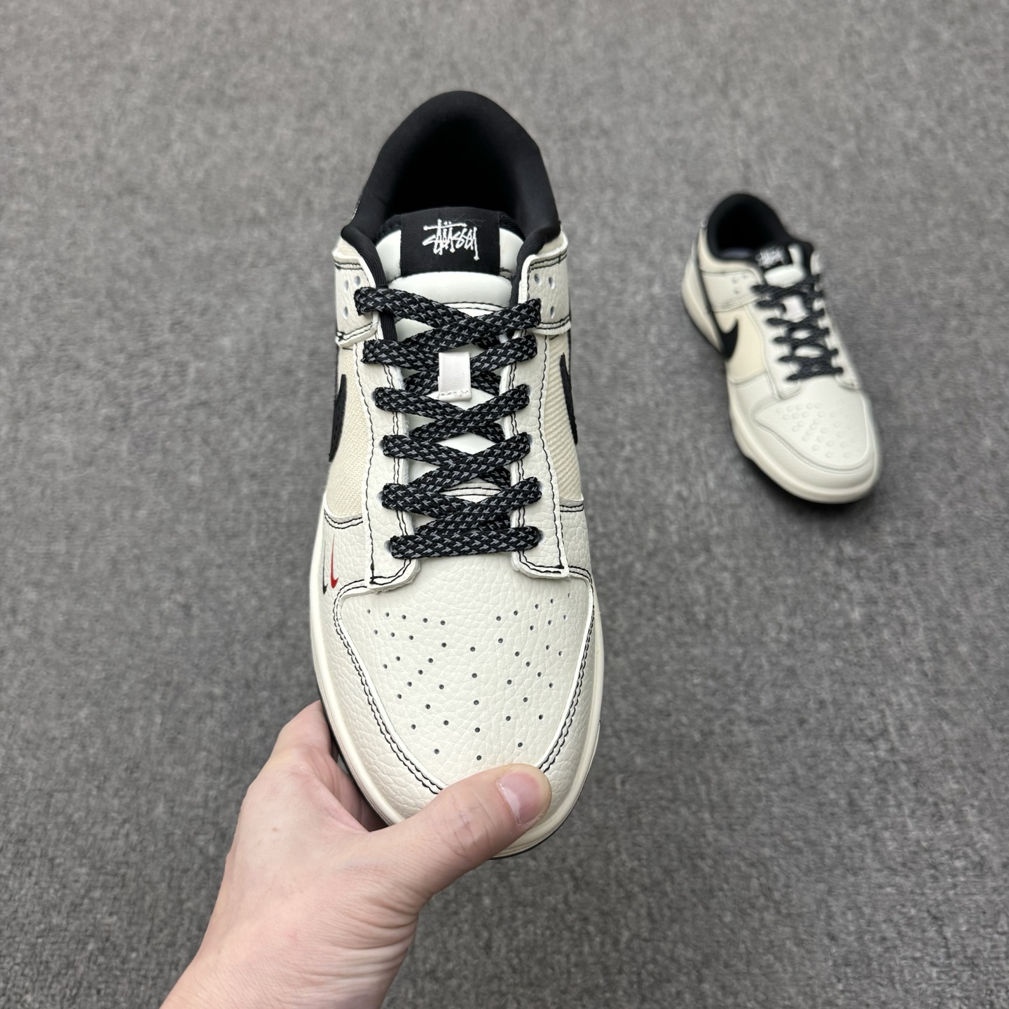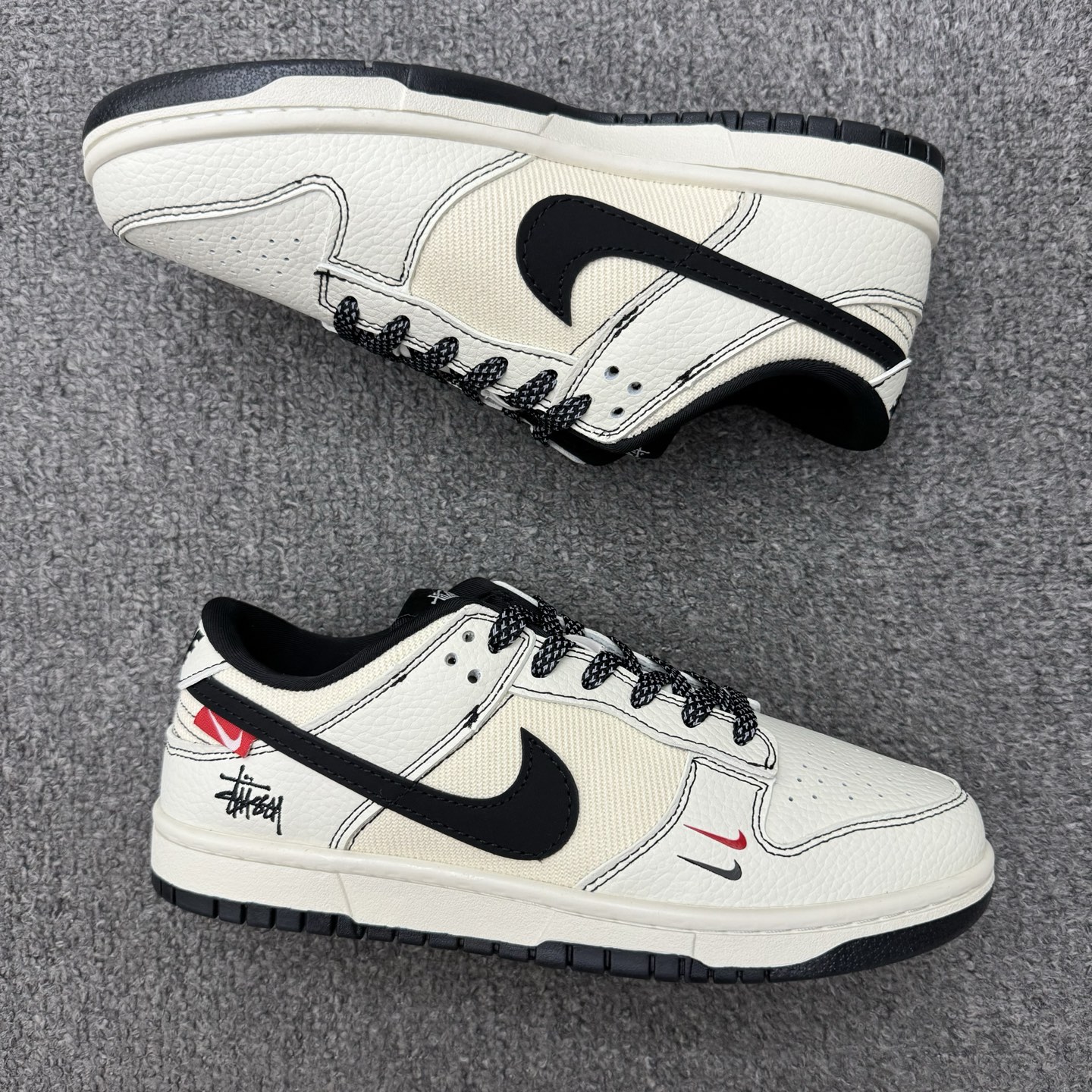 特价福利🉐💰300(36-45半) 公司级 头层 [定制球鞋] Stussy x Nike Dunk SB Low 斯图西 x 耐克 SB 低帮 米白黑 鞋身整体以米白色皮革打造,搭配米白色皮革框架覆盖层,使鞋款十分百搭;鞋身中部辅以织物填充,鞋舌上以Stussy字样呈现,鞋身两侧Swoosh Logo采用绿色皮革点缀,后跟的装饰片使用白色皮革制作,鞋舌是网眼布材料,增强透气性,后跟Nike字样以黑色缝线妆点,鞋头处迷你双Swoosh LLogo分别以红色、黑色点缀,后跟绣有Stussyn字样,彰显联名身份;最后以米白色中底搭黑色橡胶外底完善整体设计收尾。 货号:SC9207-425 尺码:36 36.5 37.5 38 38.5 39 40 40.5 41 42 42.5 43 44 44.5 45