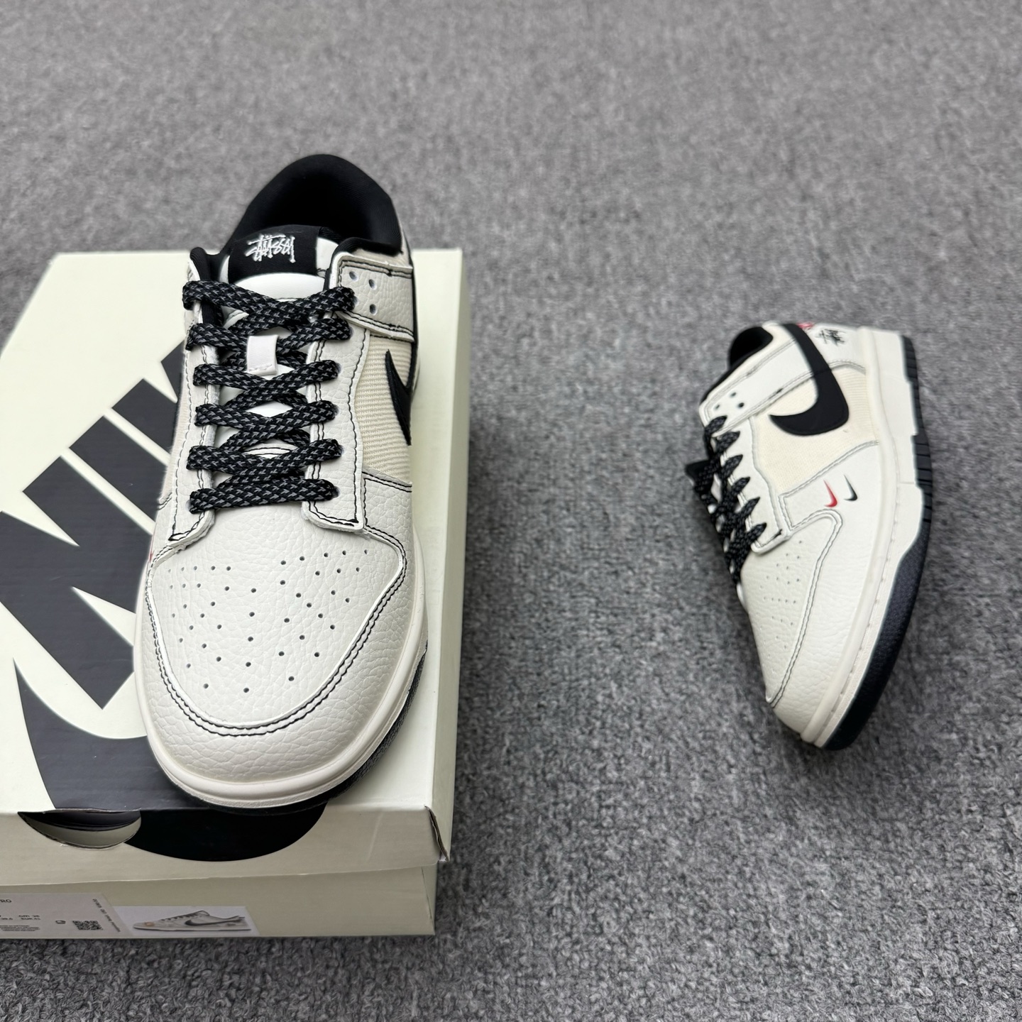 ![特价福利🉐💰300(36-45半) 公司级 头层 [定制球鞋] Stussy x Nike Dunk SB Low 斯图西 x 耐克 SB 低帮 米白黑 鞋身整体以米白色皮革打造,搭配米白色皮革框架覆盖层,使鞋款十分百搭;鞋身中部辅以织物填充,鞋舌上以Stussy字样呈现,鞋身两侧Swoosh Logo采用绿色皮革点缀,后跟的装饰片使用白色皮革制作,鞋舌是网眼布材料,增强透气性,后跟Nike字样以黑色缝线妆点,鞋头处迷你双Swoosh LLogo分别以红色、黑色点缀,后跟绣有Stussyn字样,彰显联名身份;最后以米白色中底搭黑色橡胶外底完善整体设计收尾。 货号:SC9207-425 尺码:36 36.5 37.5 38 38.5 39 40 40.5 41 42 42.5 43 44 44.5 45](https://xcimg.szwego.com/img/50f82cff/20251029/i1761683276765_894_0_1.jpg?imageMogr2)