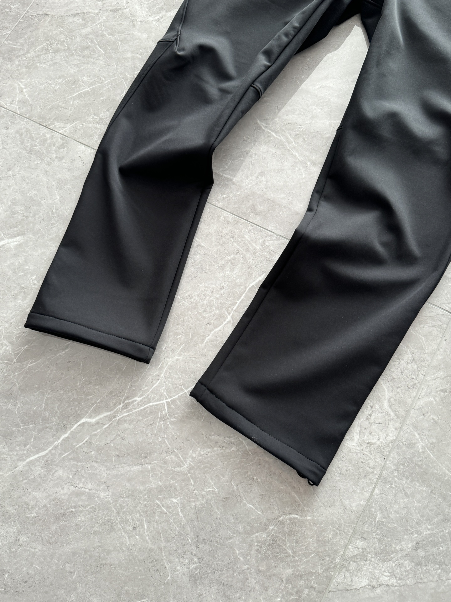 门襟两处衔接点采用特种机打结固定,腰部内侧缝制加绒布,温暖不反凉,亲肤吸汗。两侧防尘YKK拉链口袋,顺滑耐用不卡顿!印花软胶套结做拉标,装手机安全防丢,加绒内衬保暖且不影响裤型!