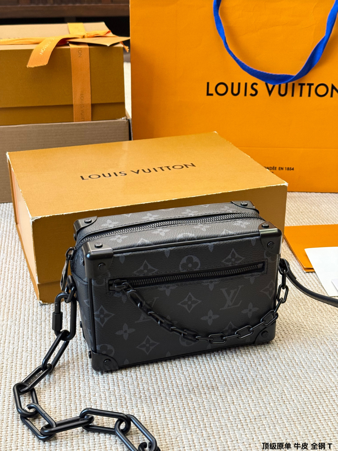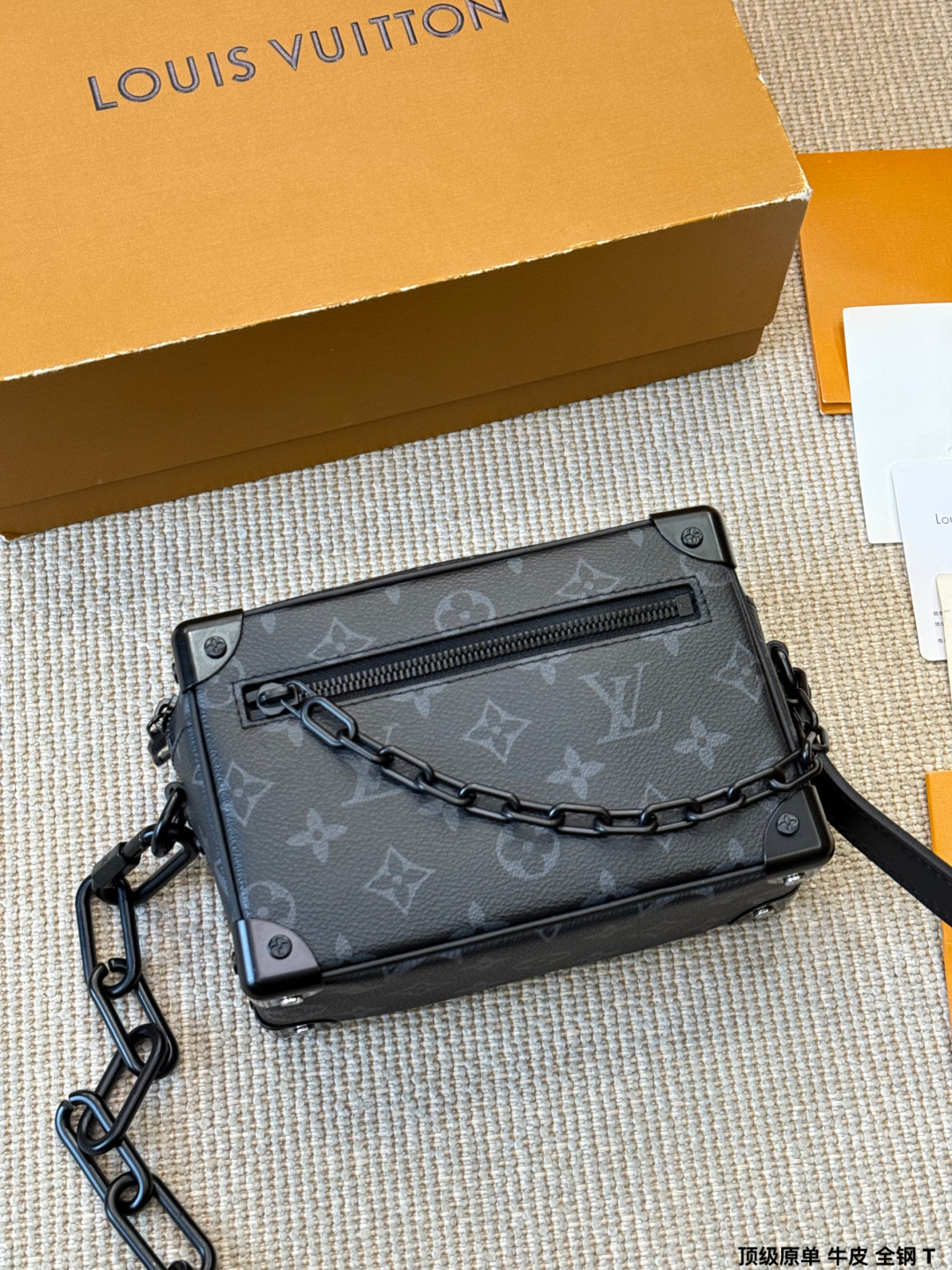 🖤LV Mini Soft Trunk黑花盒子包,型号M44735,采用Monogram Ecli💰se帆布+雾黑树脂链条,硬朗又雅致✨。尺寸18.5x13x8cm,小巧轻便,手拿肩背都OK,男女都能驾驭!灵感来自LV经典旅行箱,复古与现代感兼具,容量适中,日常出门刚刚好。链条五金易磨损,建议用保护膜延长寿命哦~这款包在潮男圈超火,实用又有型,是LV热门男包之一