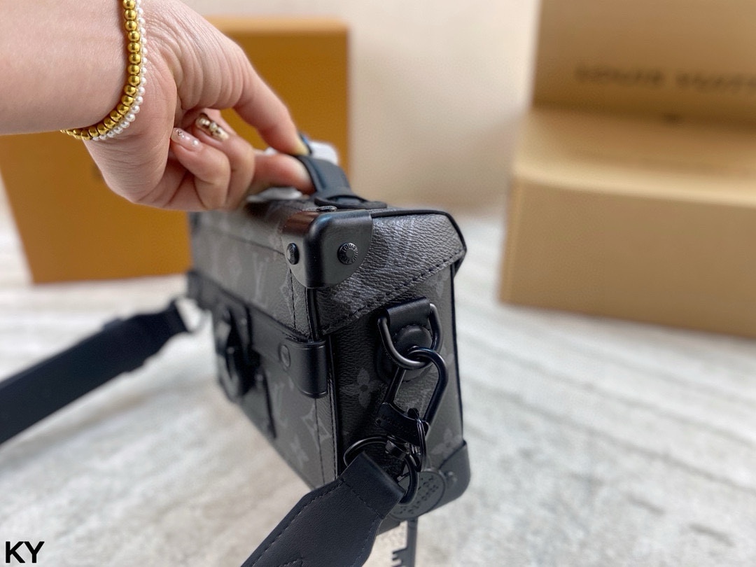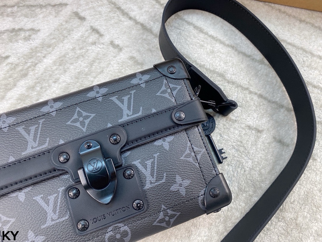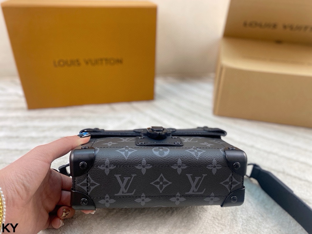 💰440 全套包装🎁 LV 新款 Soul Trunk手袋 酷飒风格十足 男女通用 这款 Soul Trunk模型由Monogram Ecli💰se帆布制成,是一款紧凑型单肩包。帆布的灵活性使其穿着特别适,并赋予其当前的外观。它具有加固的角落、皮革细节和磁性锁,是Soul Trunk系列的延续!尺寸:20*14