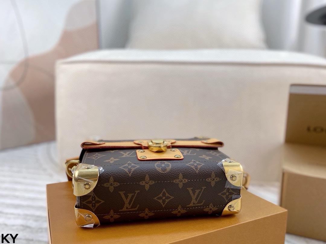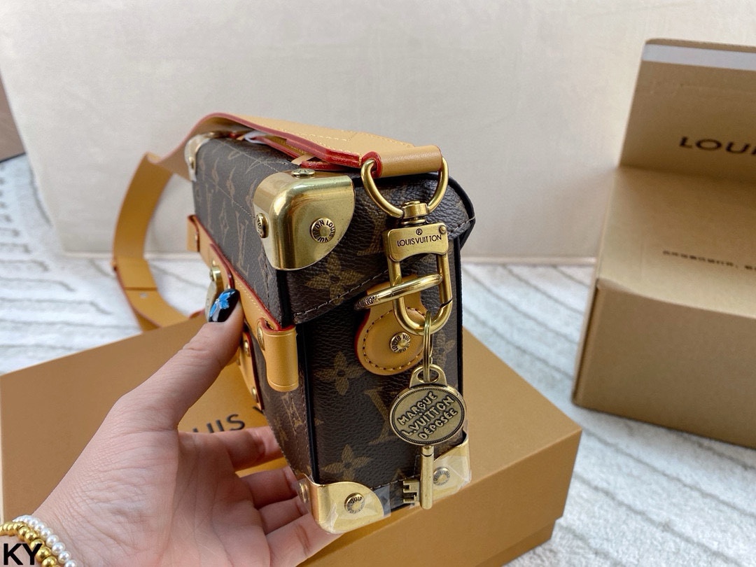 💰440 全套包装🎁 LV 新款 Soul Trunk手袋 酷飒风格十足 男女通用 这款 Soul Trunk模型由Monogram Ecli💰se帆布制成,是一款紧凑型单肩包。帆布的灵活性使其穿着特别适,并赋予其当前的外观。它具有加固的角落、皮革细节和磁性锁,是Soul Trunk系列的延续!尺寸:20*14