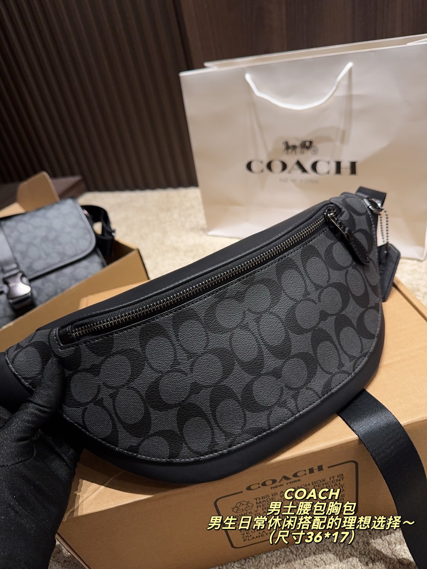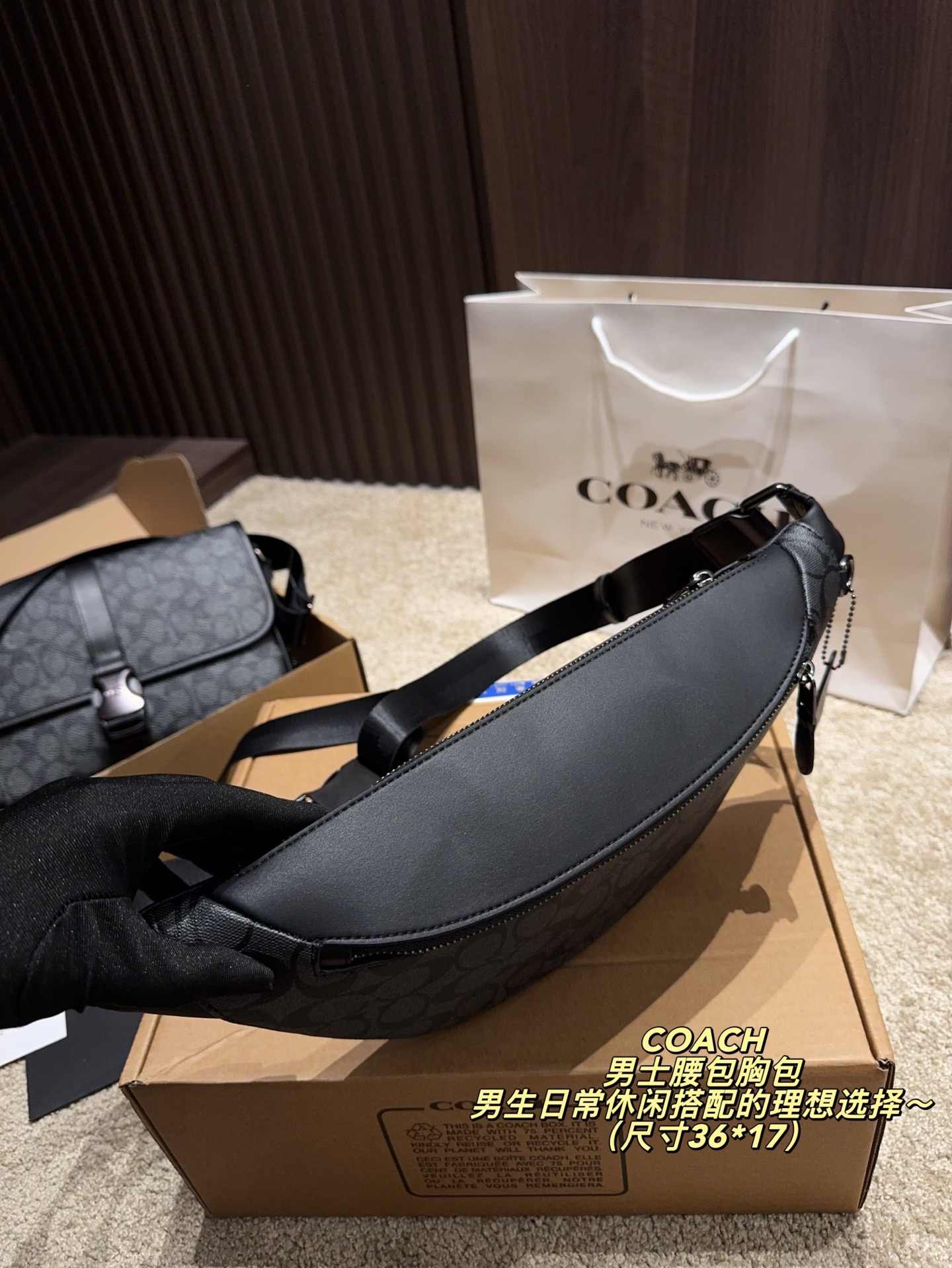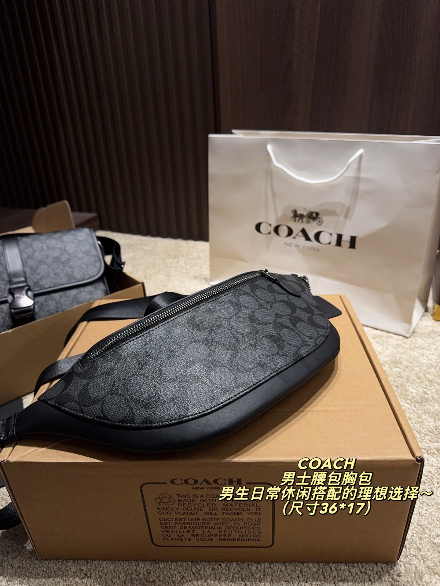 💰385配飞机盒⚠️尺寸36*17 蔻驰COACH 男士腰包胸包 男生日常休闲搭配的理想选择~ 实用又百搭,小小的身体大大的空间 非常适合放随身物品~ 面料耐磨耐刮蹭,适合男生大大咧咧的性格~