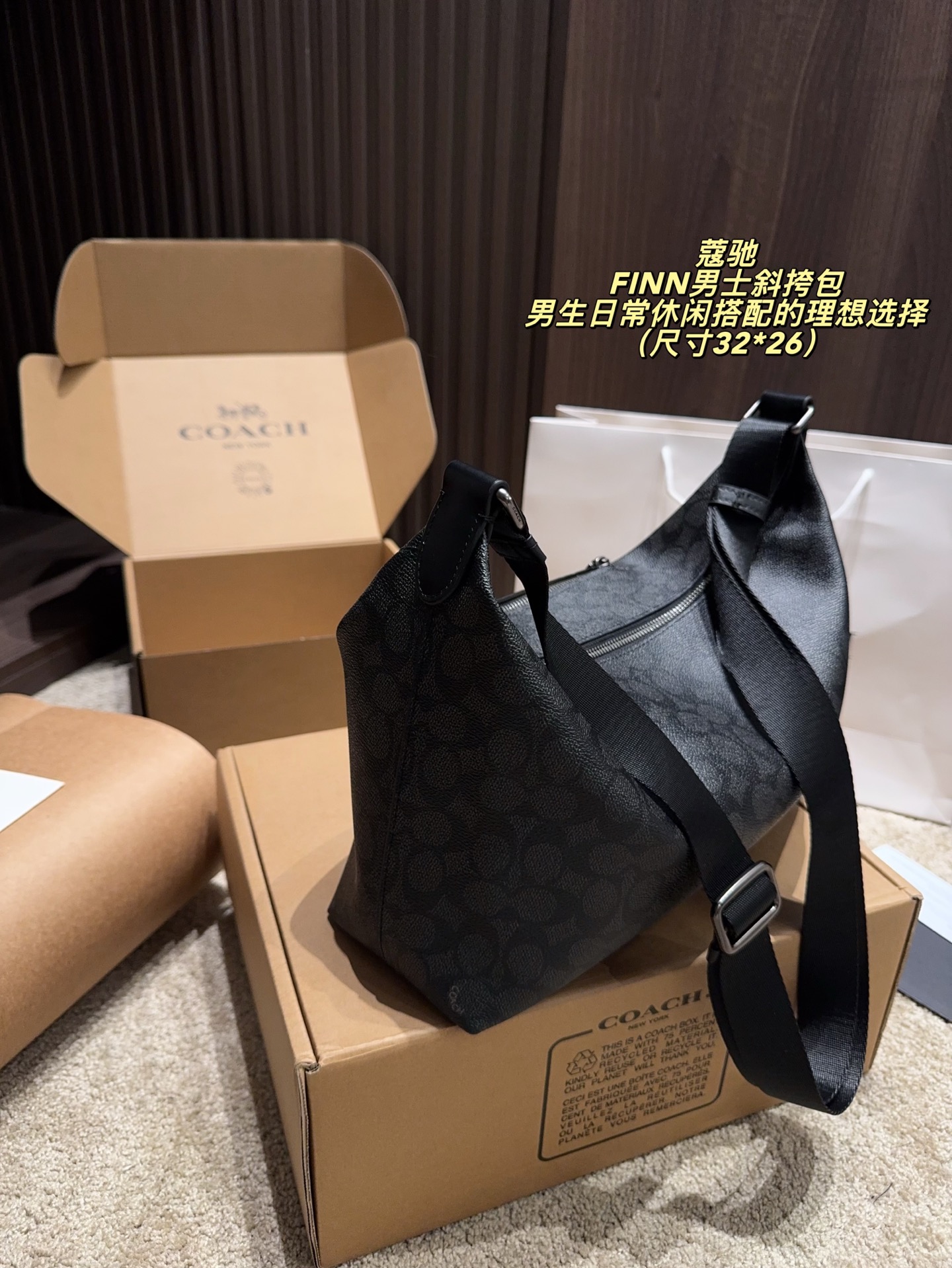 💰390配折叠盒⚠️尺寸32*20 蔻驰 coach FINN男士斜挎包 男生日常休闲搭配的理想选择 实用又百搭,小小的身体大大的空间 非常适合放随身物品 面料耐磨耐刮蹭,适合男生大大咧咧的性格