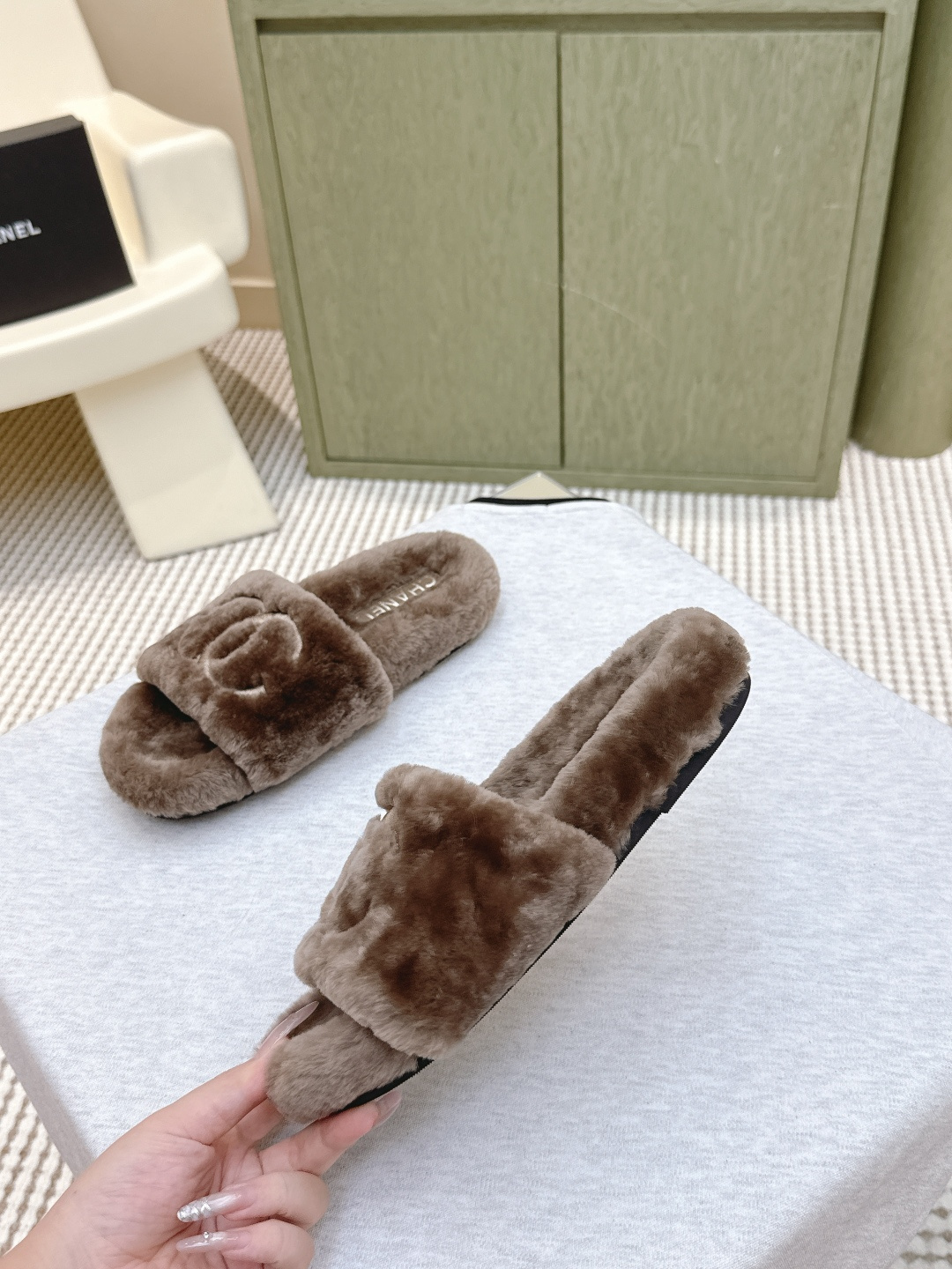 上新|D1176🦁Chanel 经典四季双C毛毛拖鞋!这款毛拖真的是真太可爱了~ 柔软蓬松的毛毛,舒服暖脚! 增高显腿长! 秋冬搭配袜子休闲又慵懒 上脚真的好看又时髦!美腻美爆了! 进口羊毛,手感细腻柔软丝滑 Eva发泡大底 Size:#35-39(40/41定制)