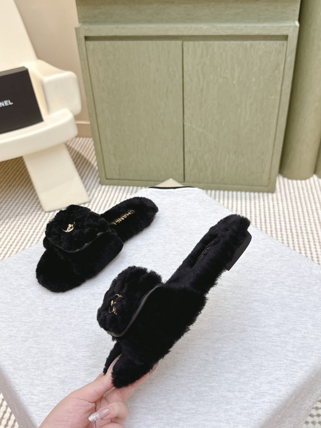 上新|D1172🦁Chanel 经典四季双C毛毛拖鞋!这款毛拖真的是真太可爱了~ 柔软蓬松的毛毛,舒服暖脚! 增高显腿长! 秋冬搭配袜子休闲又慵懒 上脚真的好看又时髦!美腻美爆了! 进口羊毛,手感细腻柔软丝滑 Eva发泡大底 Size:#35-39(40/41定制)
