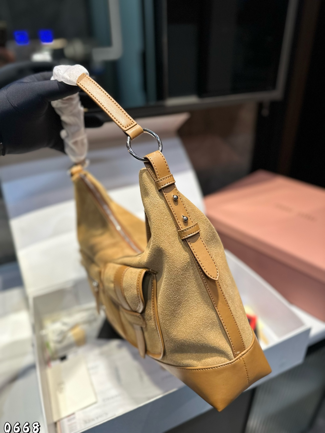❤️💰380❤️ miumiu缪缪|麂皮hobo机车包 还是💰rada都出了很多腰包款式,还有很多颜色特别的包包。大多包型的设计都是偏简单、基础的,只是当时颜色和材质的运用,让人觉得每款包包都有一个创意点 尺寸 35 30cm