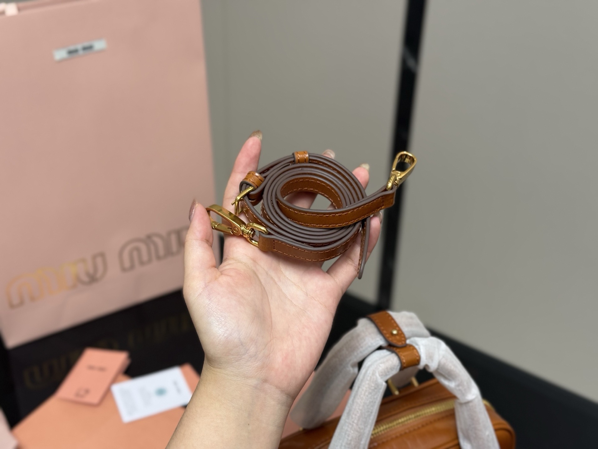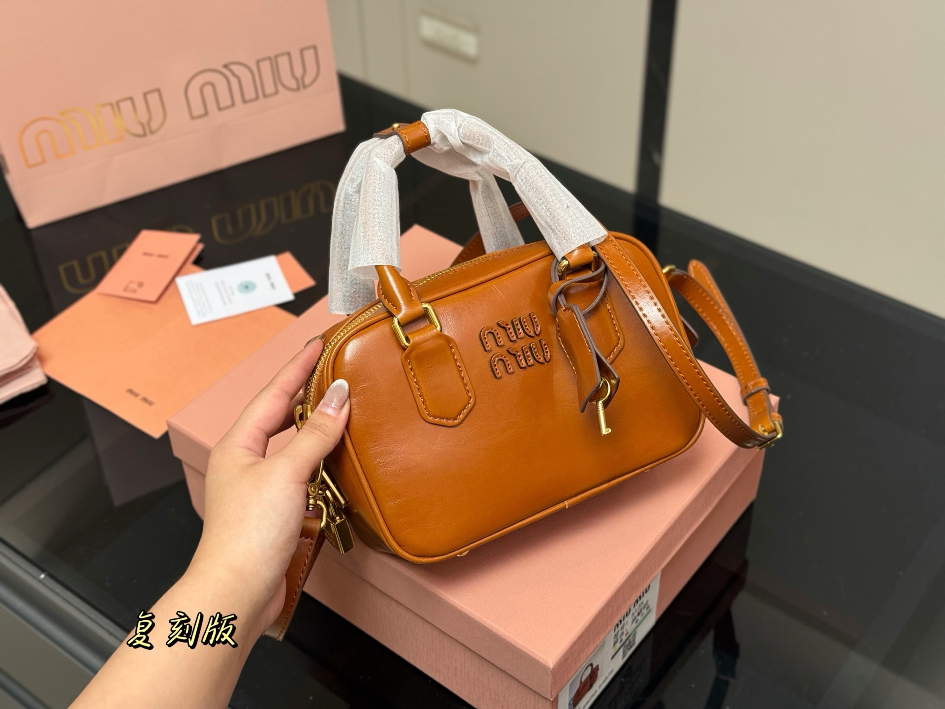 💰390 升级版配盒 size:20*13cm miumiu保龄球/方块包 包包甜度刚好! 很难不爱啊啊! 可手拎也可斜挎 绝对不是小废包哦!容量足足的~~ 出场就是miumiu小公主!