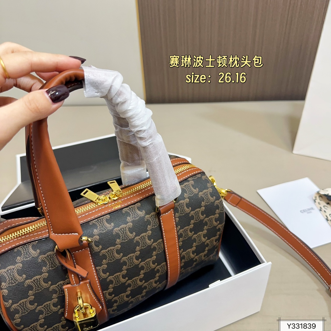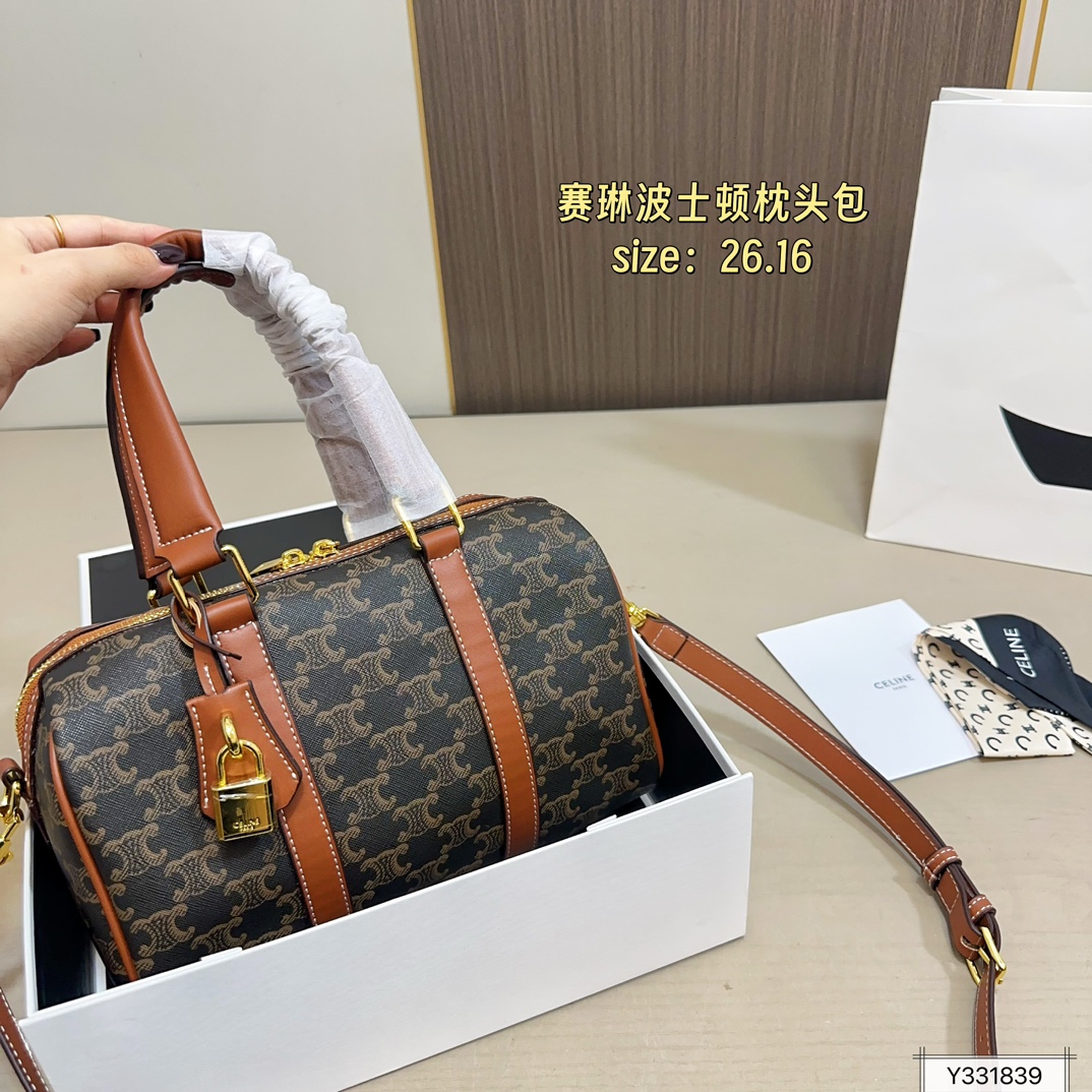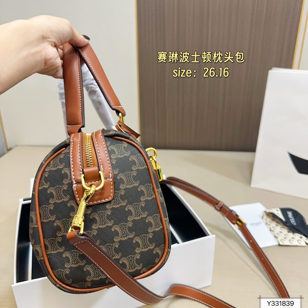 💰355(折叠盒) 尺寸:26×16 CELINE赛琳 新款Lisa同款老花波士顿枕头包 简洁利落的包身线条➕精致五金🔒 手提单肩都🉑️,容量超大💯 高颜值的复古文艺气息,经典实用!