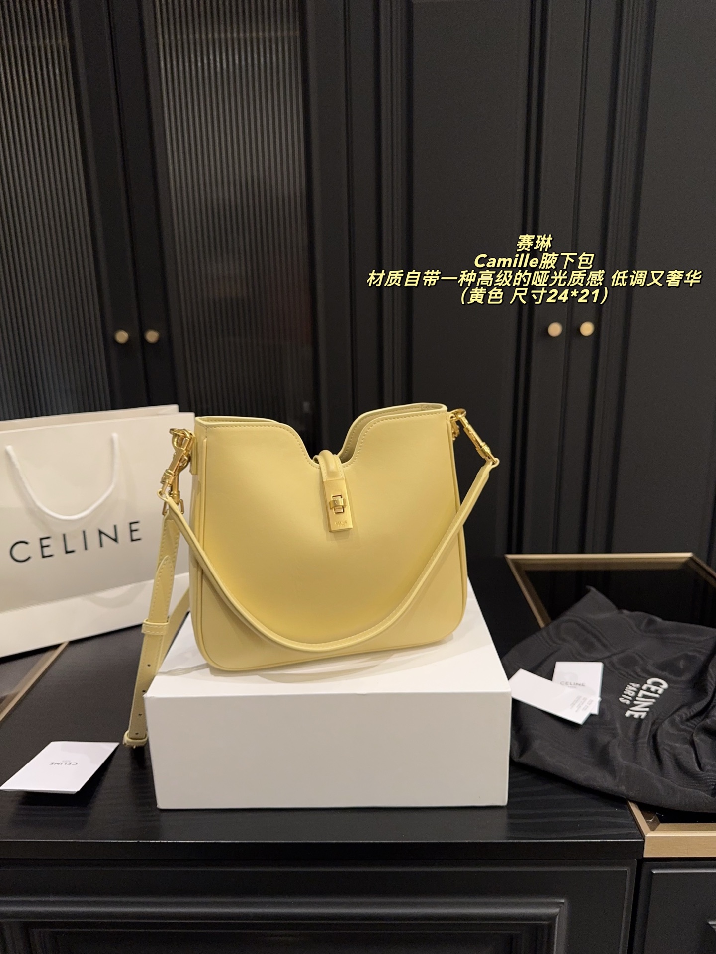 💰390配折叠盒⚠️尺寸24*21 赛琳 CELINE Camille 腋下包 时尚圈又扔出重磅炸弹!CELINE Camille新品震撼登场,谁懂我看到它那一刻的心动! 🎨设计上,CELINE把先锋美学玩到极致。新品保留经典16锁扣元素,却在形状和细节上大胆创新,线条更加流畅灵动,多了几分随性不羁,让人一眼就沦陷。这次材质的选择也超有诚意,特殊处理的皮革不仅触感柔软,还自带一种高级的哑光质感,低调又奢华。