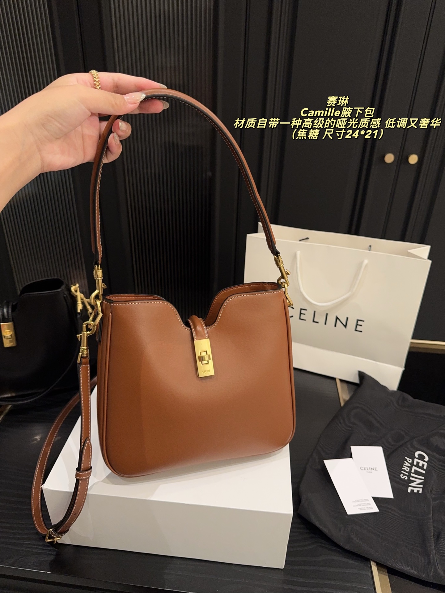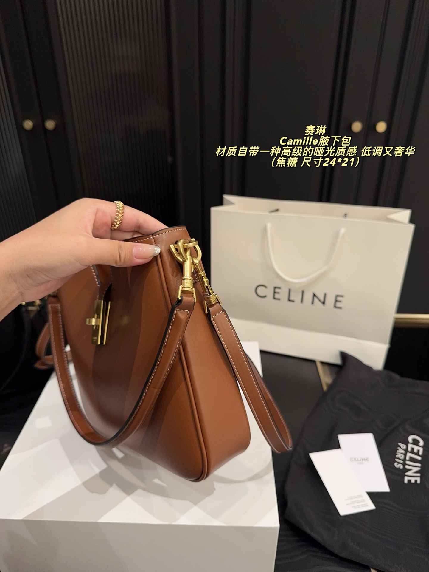 💰390配折叠盒⚠️尺寸24*21 赛琳 CELINE Camille 腋下包 时尚圈又扔出重磅炸弹!CELINE Camille新品震撼登场,谁懂我看到它那一刻的心动! 🎨设计上,CELINE把先锋美学玩到极致。新品保留经典16锁扣元素,却在形状和细节上大胆创新,线条更加流畅灵动,多了几分随性不羁,让人一眼就沦陷。这次材质的选择也超有诚意,特殊处理的皮革不仅触感柔软,还自带一种高级的哑光质感,低调又奢华。