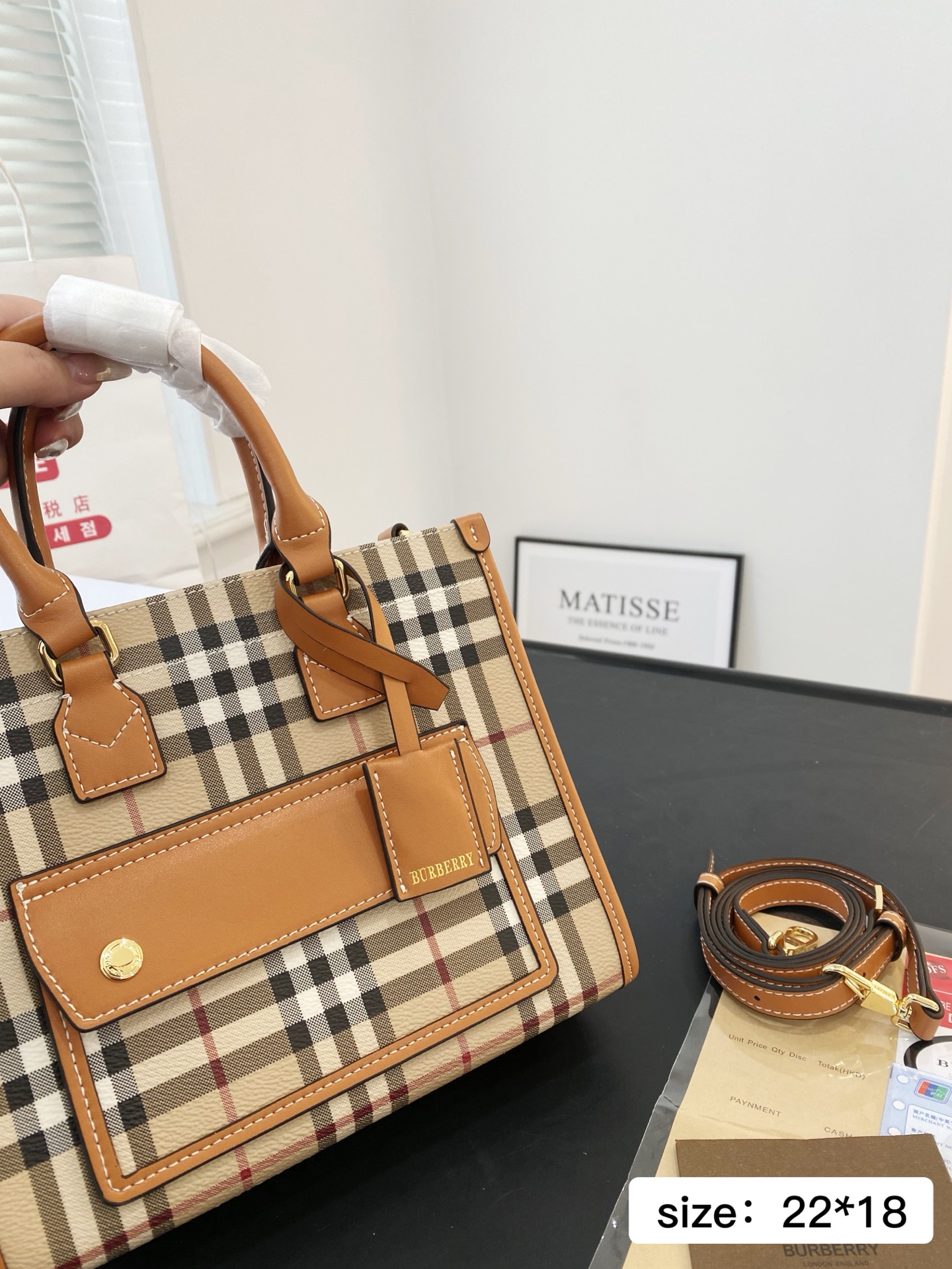 🅿️小号💰370⚠️尺寸22.18 🅿️大号💰380⚠️尺寸38.29 巴宝莉 桦木棕Freya 托特包BURBERRY 真金光泽金属配件,斜背式肩带可调节,可以斜挎 可以手提,袋口有按扣开关,做工质量没的说、完美精致漂亮,容量大,出行一包搞定,真的太漂亮了 7713