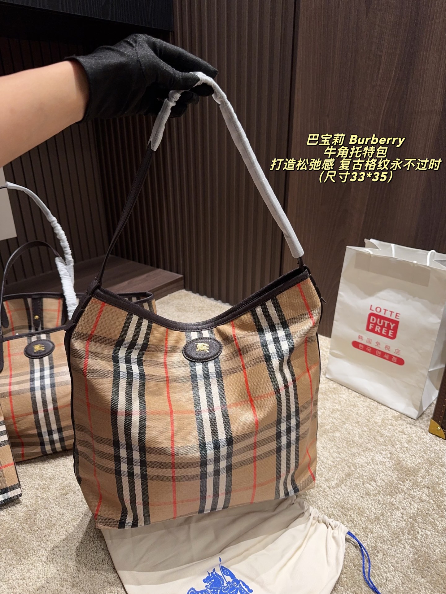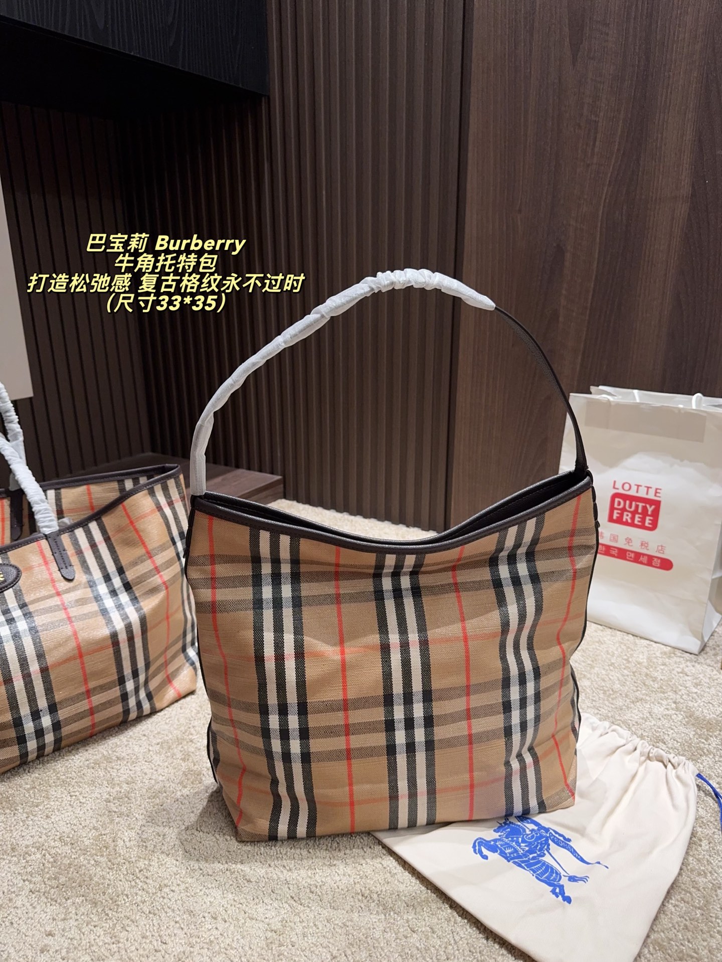💰420 无盒⚠️尺寸33*35 巴宝莉Burberry 牛角托特包 Burberry 复古Vintage格纹包款,打造松弛感 复古格纹永不过时