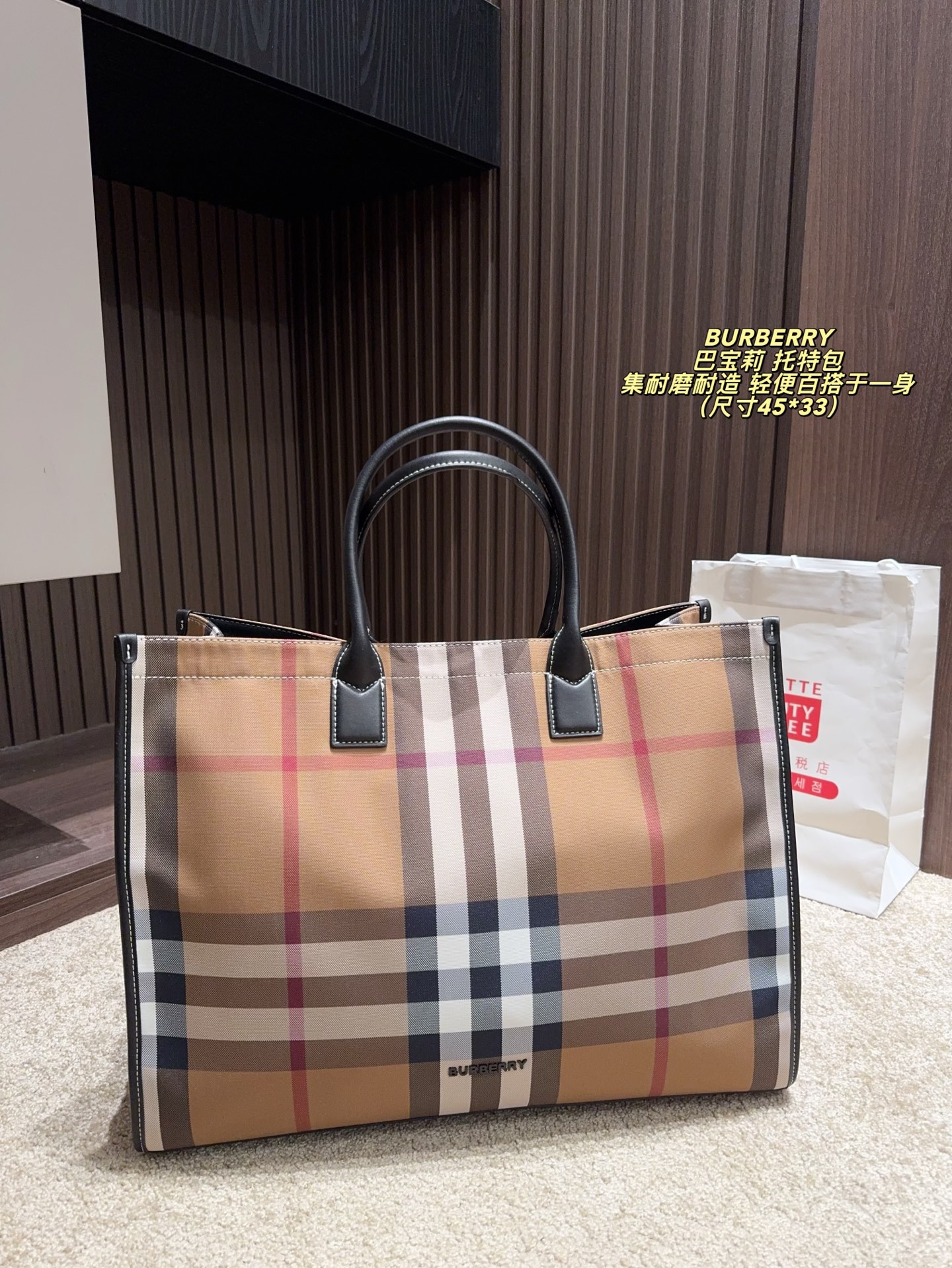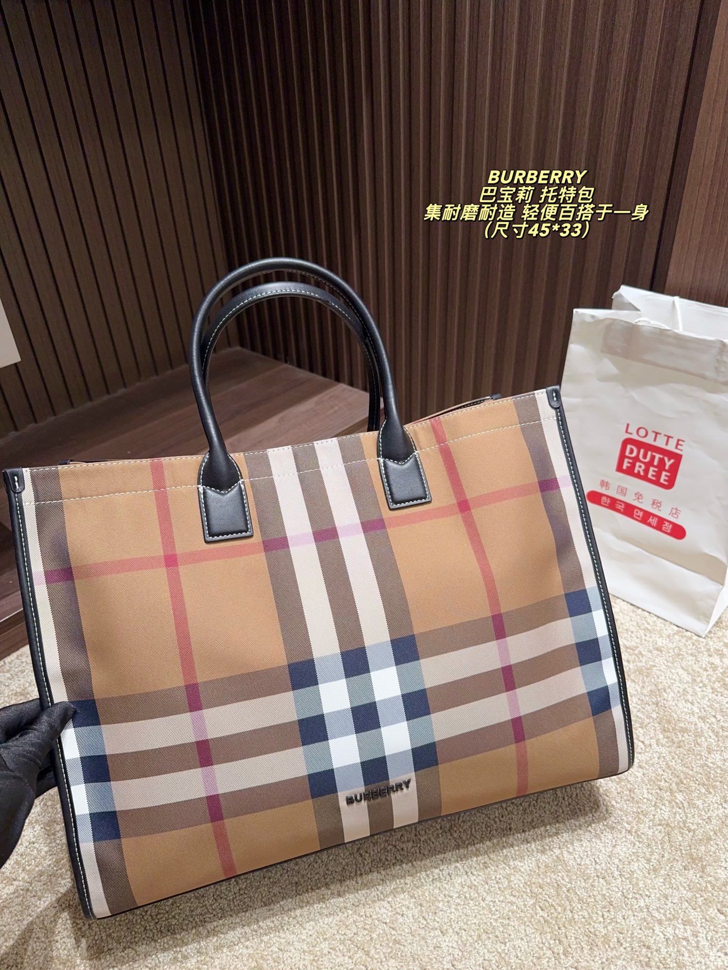 💰375无盒️⚠️尺寸44*33 巴宝莉 托特包BURBERRY 集耐磨耐造,轻便百搭于一身! 配皮全部头层帕纳小牛皮, 皮料的质感就不用讲了,牛皮里数一数二的,手感和纹路都是比较细腻的! 颜色是偏哑光质地的,总之就是很有高级感!!