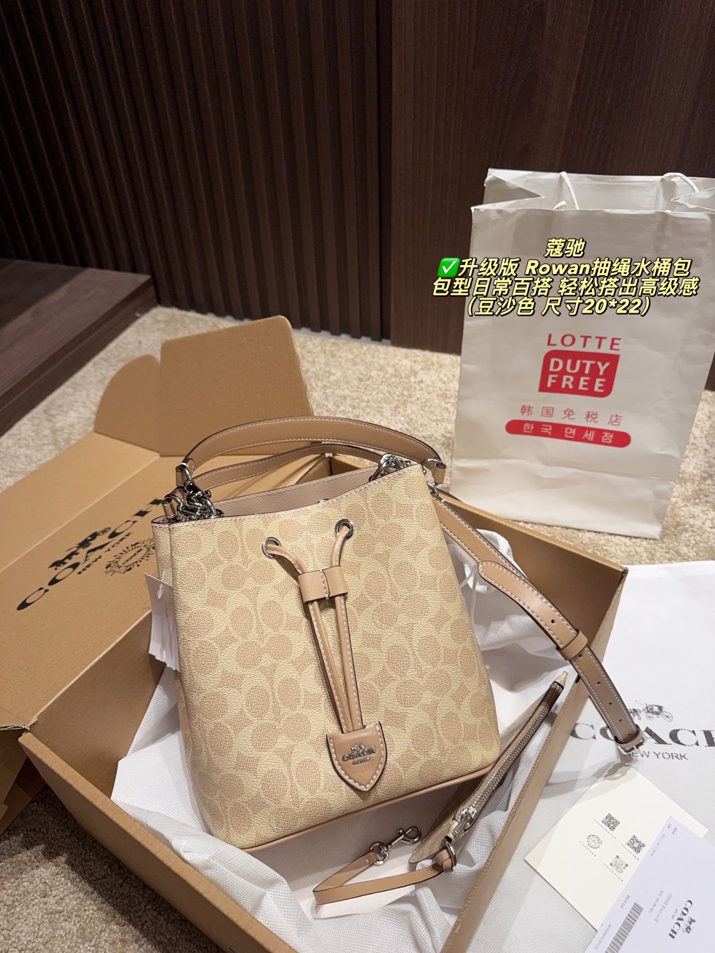 ✅升级版 💰375 配飞机盒⚠️尺寸20*22 蔻驰COACH Rowan抽绳水桶包 心动一亿遍! 奶乎乎的小桶巨嗲巨温柔 ~ 和春夏天敲适配 !! 水桶包型 百搭 而且不挑身型 轻松搭出高级感 ! 身边闺蜜人手一个