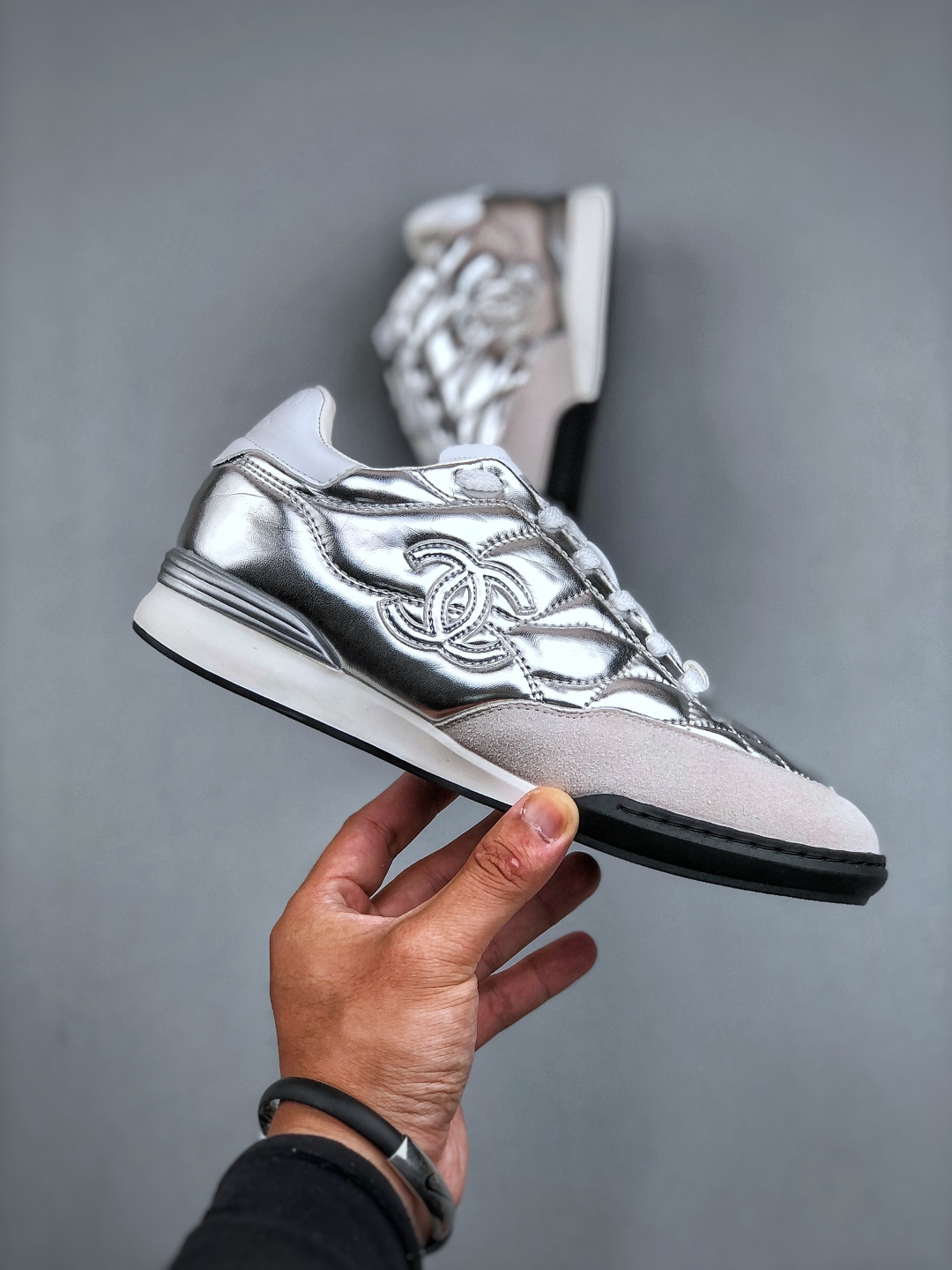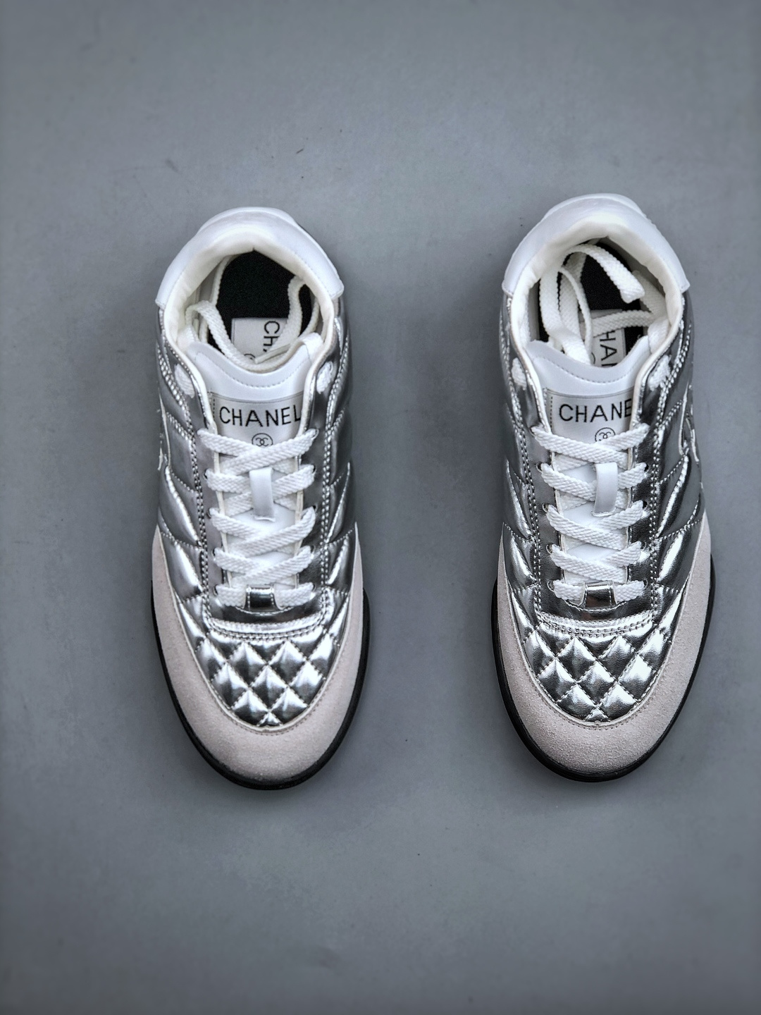 CHANEL/香奈儿 广州大厂工艺 2025新款小香风麂皮圆头熊猫菱格刺绣德训鞋 官方最新花纹礼盒顶级包装官方同步 Chanel 香奈儿最新菱格小球鞋 四季百搭 coco女孩必入 隐藏款网球鞋 秀气高级好看 非常舒适! 鞋面原版定制胎牛油皮 牛反绒 原版进口透气绒布 小羊皮内里 原版开模碎钉钉橡胶 原厂TPU组合大底 尺码:35-40