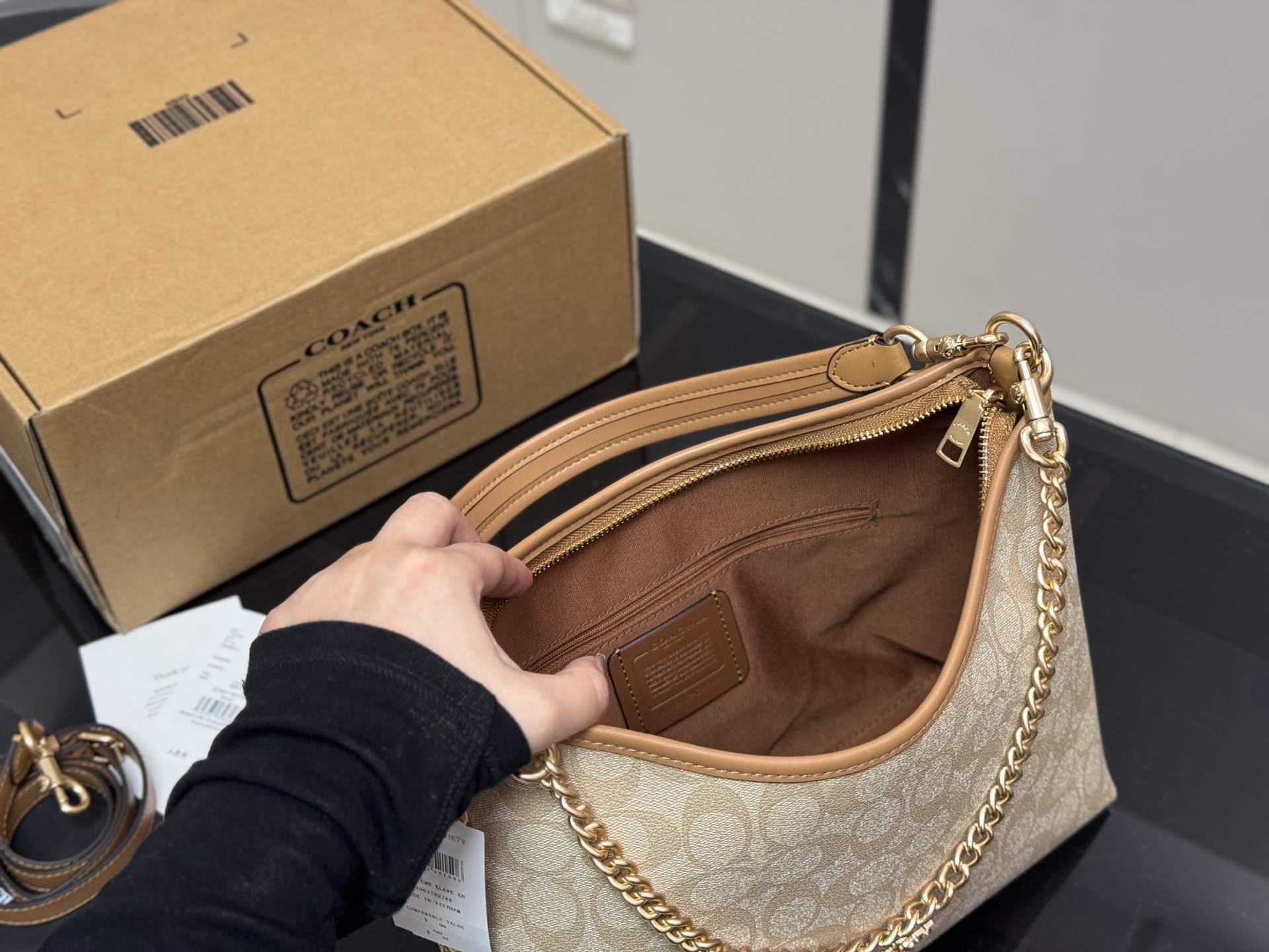 💰370 配盒 size:31*23cm coach 蔻驰新款laurel 流浪包真的绝美 腋下包hobo 随性慵懒轻松拿捏 一长一短两条肩带 单肩斜挎手提腋下背 都可以随意百搭 内部有带拉链的侧兜可以用来放重要物品!