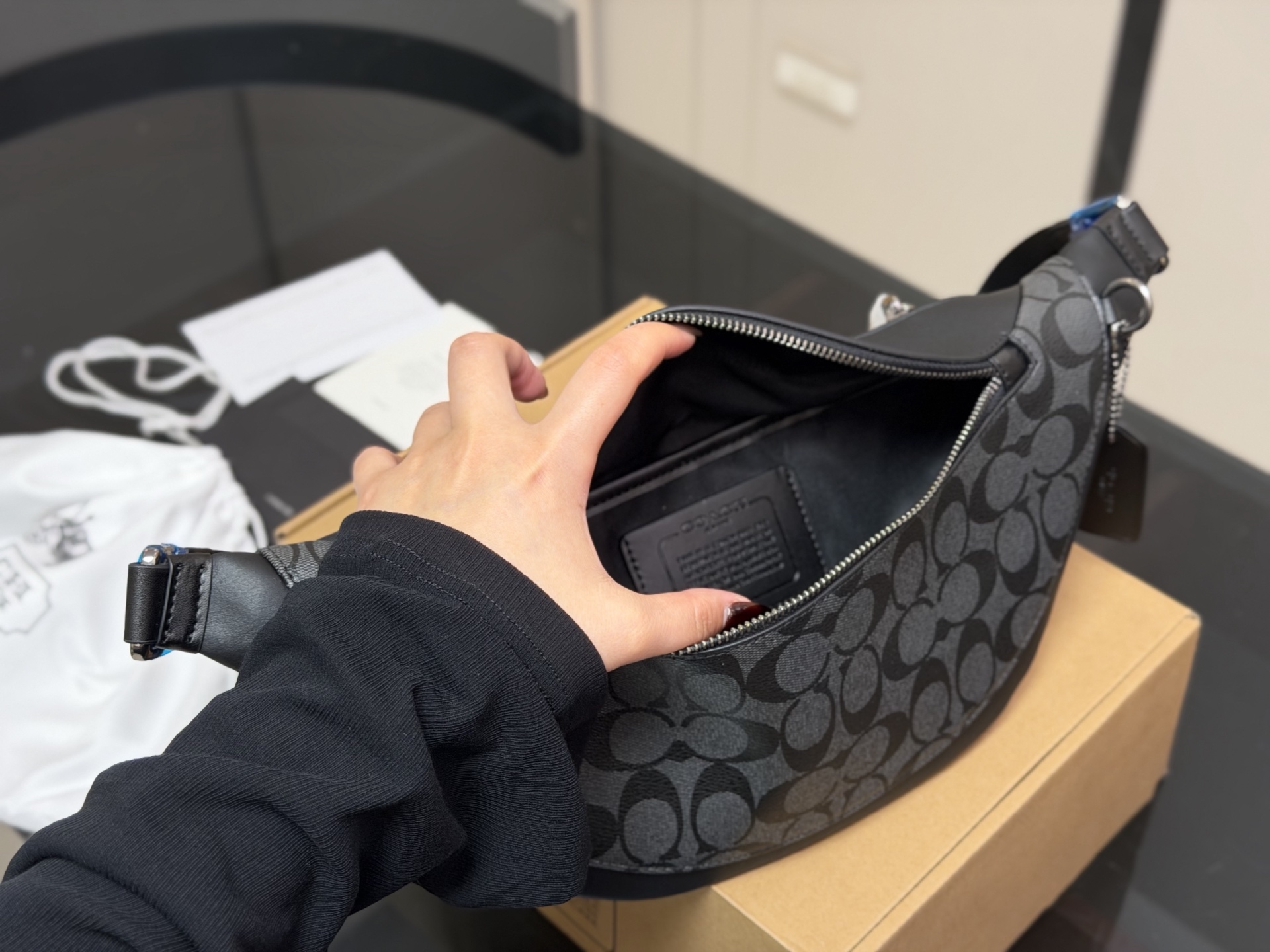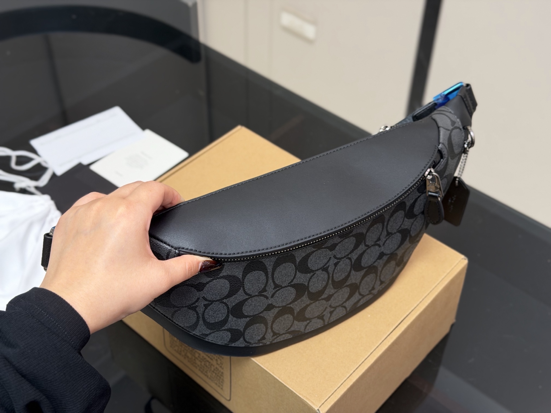 💰385 配飞机盒 蔻驰胸包斜挎单肩包 采用精湛镶嵌细工 实物原厂原版面料 尺寸:33.17cm