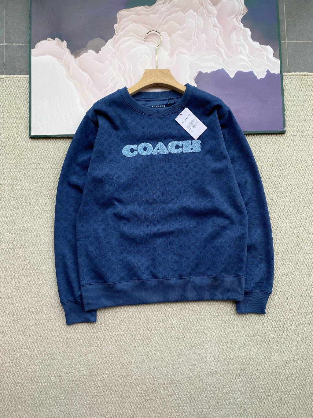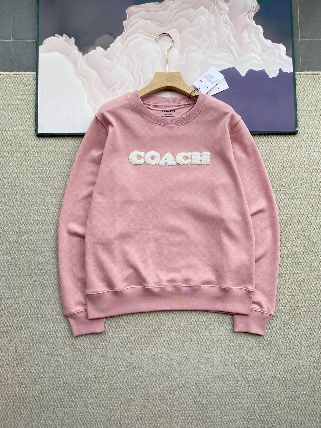 💰220 COACH蔻驰女款圆领老花毛毡刺绣小标卫衣 这种集原单品质、特殊面料、精致细节于一身的卫衣, 真的可遇不可求 既有品牌的高级感,又没有过分张扬的logo, 两个颜色都经典百搭,不管是自己穿还是送朋友, 都能感受到那份藏在细节里的用心,入手绝对不亏! 面料非常特殊,你们收到就可以感受到质感 这不是那种磨毛材质,是提花编织的, 面料定织定染的客供材质,质感十足 上身非常减龄,又多了几分俏皮感 不分年龄,任何年龄段都能驾驭! 微宽松的落肩直筒设计,对各种身材都特别友好!肩线拼接走线干净密实,没有多余的线头,落肩的弧度刚好藏住斜方肌,显瘦又不显得臃肿 圆形领口看着简约,内里却做了包条加固,久穿也不会变形卷边;最让人惊艳的是细节处的用心:袖口、下摆、领口全是同缸定染的螺纹拼接,密度高、弹力大,摸上去紧实有质感,而且和衣身几乎无色差,一看就是下了功夫的好工艺,穿再久都不会松松垮垮。 胸前的立体毛毡刺绣更是点睛之笔,毛绒感超级强,摸上去软乎乎的像小云朵,立体感十足,比普通印花精致太多 100%纯棉面料 不是那种常见的纯棉磨毛材质,而是用了提花编织工艺,上手瞬间就能感受到它的特别:外层的提花纹理细腻立体,像藏着无数精致的小图案,摸起来带着棉料的温润却又多了份挺括的筋骨,不会软塌塌没型; 内里是毛圈质地,蓬松却不厚重,贴身穿像被云朵轻轻托住,亲肤到让人想一直贴着皮肤,既透气又带着恰到好处的保暖感,哪怕穿一整天都清爽不闷汗,洗多少次都不会起球变形,质感真的绝了。 深蓝 粉色2个颜色 深蓝色沉稳大气,自带复古滤镜,上身就是低调有品的代名词 粉色则甜而不腻,老花的点缀中和了娇俏,多了份优雅的女人味 S M L 3个尺码 最大穿到150斤