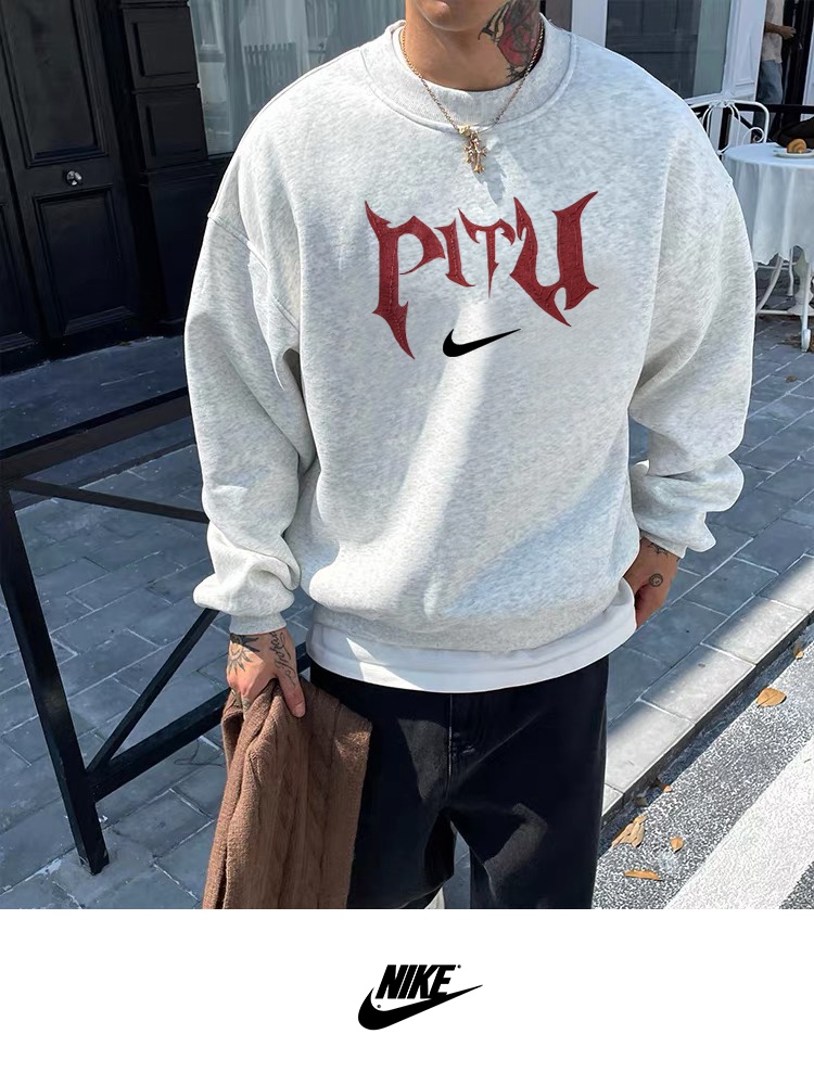 💰185 NIKE 耐克 街头潮酷宽松休闲圆领卫衣 运动户外上衣 男女同款 设计灵感: 红色“PTU”字母带着街头潮酷感,搭配标志性小勾,细节拉满。宽松版型对各种身材都友好,单穿或者叠穿内搭,都能轻松打造出随性又有范儿的造型,出街绝对吸睛~ 面料工艺: 1.甄选320g四面弹氧气面料,打造三维立体空间,面料兼具厚度质感与弹性,吸湿透气,穿着贴合不紧绷,舒适有型。 2.领口/袖口/下摆罗纹均采用高密度拼接技术,方便穿脱,舒适升级。 3.宽松版型,基础上配合高端肩部剪裁,勾勒硬朗线条,不失质感格调。 4.领口固形压条,有效保持颈部线条流畅。 5.下摆双排车缝线做工精细,细节精致,提升穿搭质感。 6.原版烫印领标+原版吊牌,品质跃现。 尺码数据: M【170cm】:衣长70/胸围112/(适合130斤以内) L【175cm】:衣长73/胸围118/(适合160斤以内) XL【180cm】:衣长75/胸围124/(适合190斤以内) 注意⚠️: 落肩袖设计,版型偏大。 平时穿着效果偏合身的朋友建议选择小一个码数。
