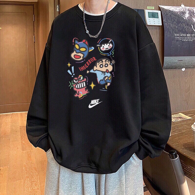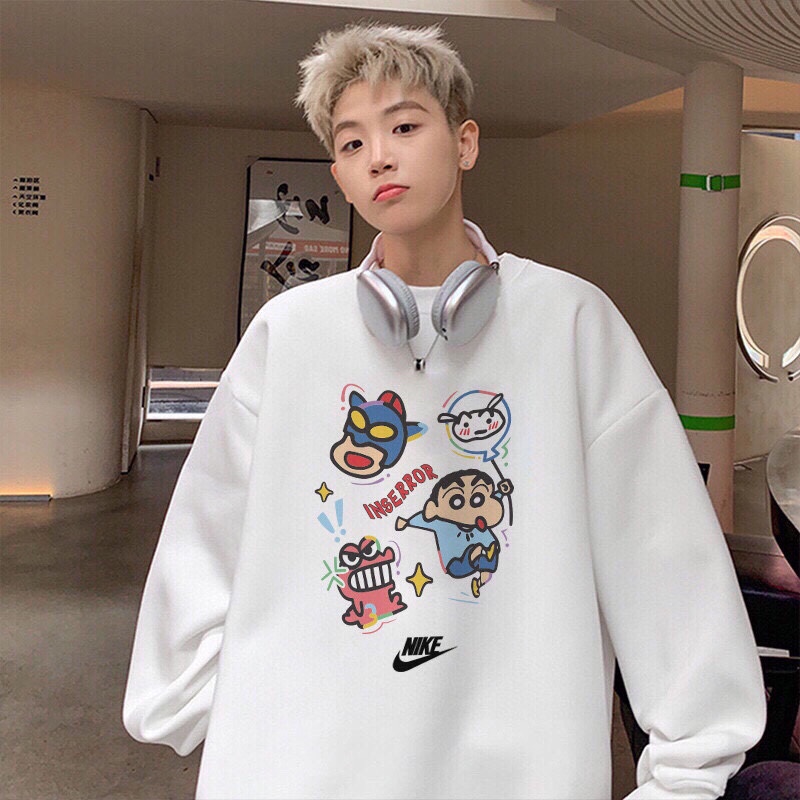 💰185 NIKE 耐克 蜡笔小新联名 插画 休闲宽松圆领卫衣 运动户外上衣 男女同款 情侣款 设计灵感: 他古灵精怪爱捣蛋!总是跳起招牌左摇右摆屁屁舞,可爱到犯规!动感超人头像!小白头像!蜡笔小新头像!小怪兽饼干!集齐满满元素! 面料工艺: 1.甄选320g四面弹氧气面料,打造三维立体空间,面料兼具厚度质感与弹性,吸湿透气,穿着贴合不紧绷,舒适有型。 2.领口/袖口/下摆罗纹均采用高密度拼接技术,方便穿脱,舒适升级。 3.宽松版型,基础上配合高端肩部剪裁,勾勒硬朗线条,不失质感格调。 4.领口固形压条,有效保持颈部线条流畅。 5.下摆双排车缝线做工精细,细节精致,提升穿搭质感。 6.原版烫印领标+原版吊牌,品质跃现。 尺码数据: M【170cm】:衣长70/胸围112/(适合130斤以内) L【175cm】:衣长73/胸围118/(适合160斤以内) XL【180cm】:衣长75/胸围124/(适合190斤以内) 注意⚠️: 落肩袖设计,版型偏大。 平时穿着效果偏合身的朋友建议选择小一个码数。
