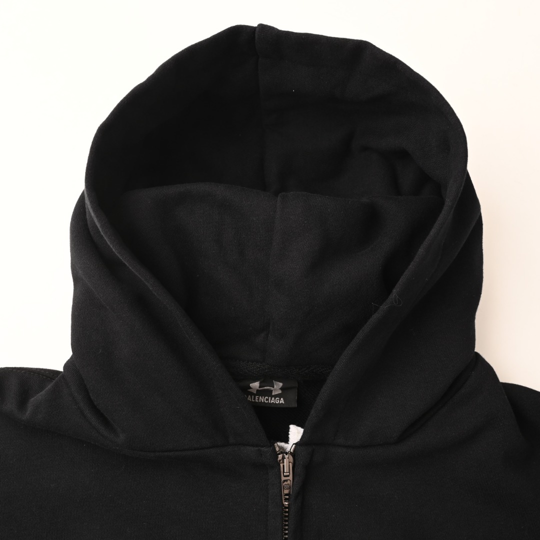 正品级💰450 Balenciaga巴黎世家BLCG X Under Armour/安德玛 联名款运动套装连帽拉链卫衣外套 通过传统运动服的版型加大凸显BLCG设计语言 ,呈现集功能性与美学为一体的标志性廓形服饰,小logo百搭 Size:S-L