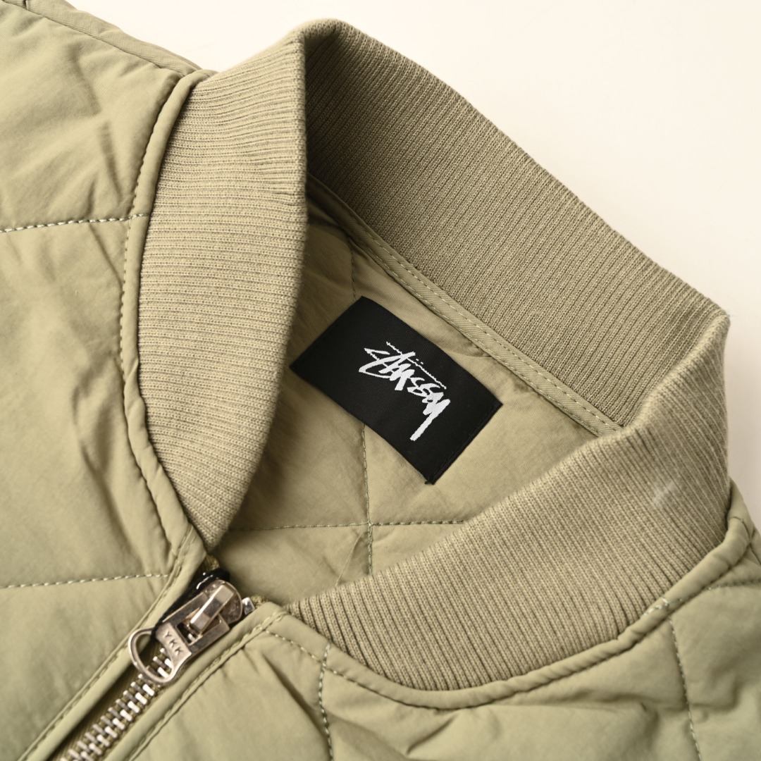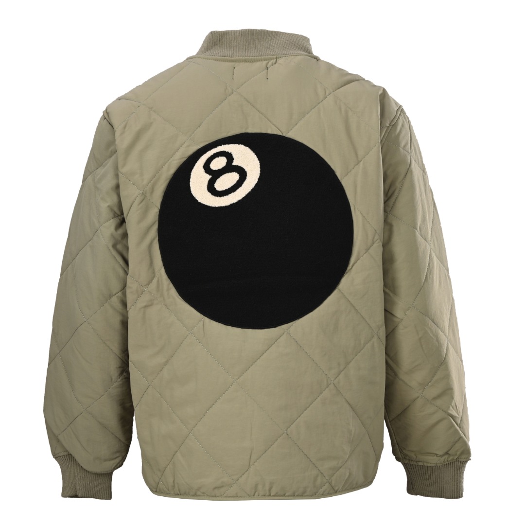 正品级💰420 STUSSY斯图西 23FW 黑8台球拉链棉服夹克外套 🎱 BALL QUILTED LINER JACKET 首先,先讲讲工艺,整件衣服全部菱形格子都要对位,需要一件件手工裁剪才行,整整耗时七天才能裁完。 全包边设定,等于一个拼接位要车缝三次!!! 先打边收口,再用原身布两边包起来,好看是好看,要花费三倍的时间,工钱也是三倍 后幅的黑8绣花,是先做好一个绣花章,再缝上去的。采用了羊毛混涤纶的面料,比纯涤纶要贵两倍,但手感舒服且柔软。整体也是比较软的,后背不会有硬硬的异物感 采用正品YKK拉链,顶普通的无牌拉链3条有多了。YKK官方测试实用一万次无损,上下拉合非常顺滑不拉扯。 领子采用和原版一致的羊毛混纺材质,硬挺有型,不会松松垮垮的 颜色:黑色 卡其色 绿色 Size:M-XXL
