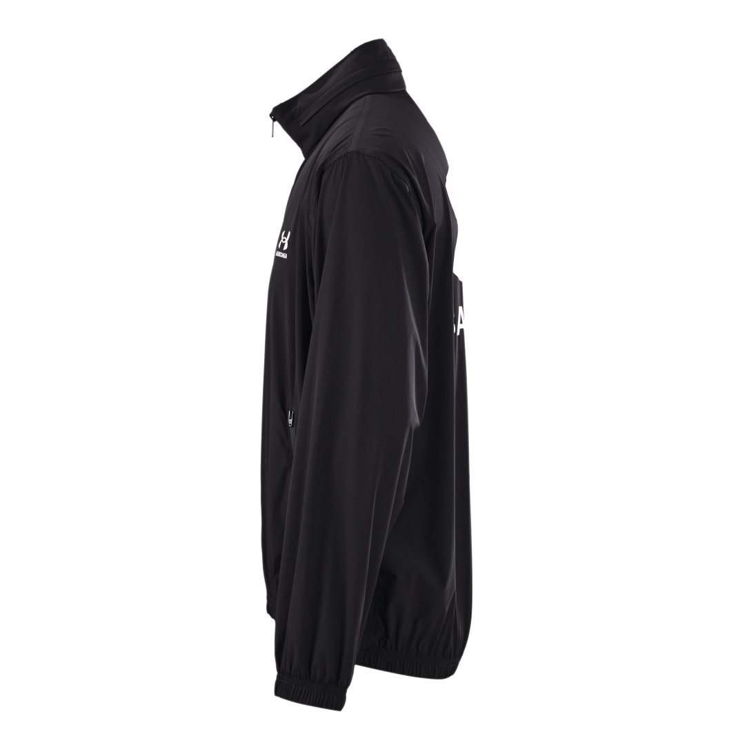 正品级💰490 BALENCIAGA巴黎世家BLCG 联名款 弹力尼龙连帽夹克外套 面料选用弹力尼龙,由于加入了弹性纤维,使其具有出色的延展性和回弹性,尼龙有天然防水的性能,易于清洗和干燥,抗皱性能好,夹克正面饰以安德玛LOGO和B家字母为主体的胶浆印花,具有良好的耐磨性和耐洗性,后领下方设计了一个隐藏袋,通过拉链开合,因面料轻薄的特性,根据不同需求,可将风帽隐藏或打开,领口处设有圆牛筋帽绳搭配树脂绳头方便调节松紧度,袖口和下摆做了扁牛筋收口,弹性优良,使衣服整体更具线条感。下摆做了圆牛筋松紧带和隐藏的调节绳头,宽松版型 Size:S-XL