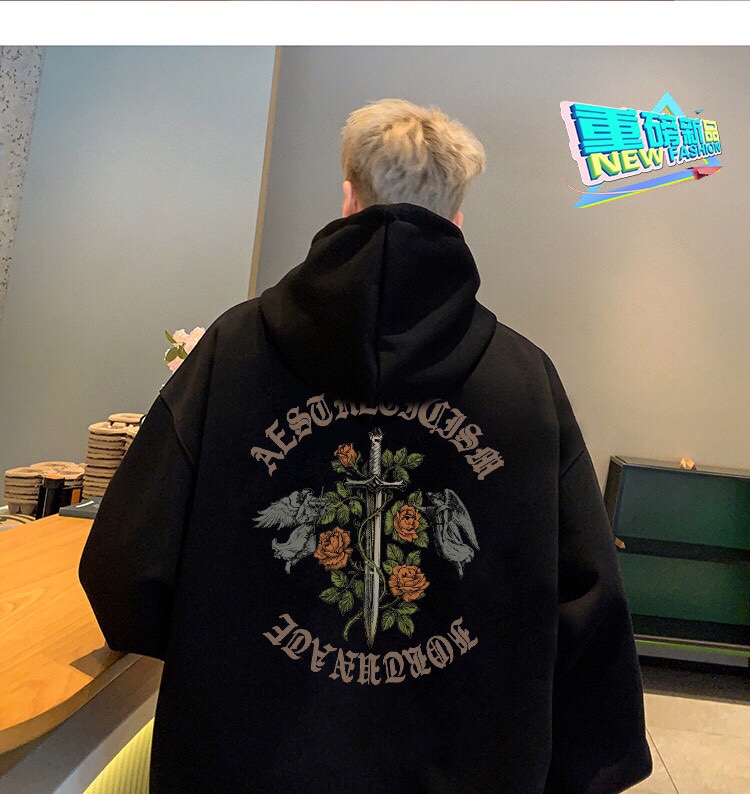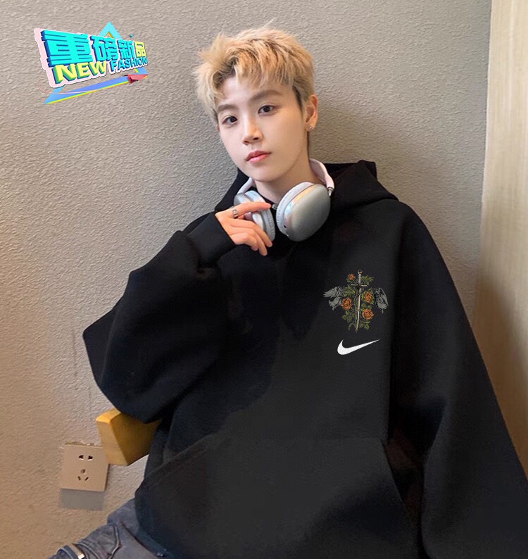 💰205 NIKE 耐克 复古玫瑰荆棘🌹 宽松休闲连帽卫衣 男女同款 情侣款 💡:帽绳如不喜欢,可自行抽出拆卸,廓形帽衫玩转不同穿法。 设计灵感: 复古玫瑰荆棘刀剑图案,玩转复古摩登主义,解锁多元穿搭灵感。 时髦随性的感觉~简单大方! 面料工艺: 1.甄选320g新氧棉面料,触感细腻柔滑,吸湿透气,柔软自带支撑感。 2.弹力罗纹收口,后领保形织带,有效防止肩部坍塌和变形。 4.显瘦双肩线领口,贴肤面透气舒适。 5.下摆双排车缝线做工精细,缝合自然,公正有序。 6.双层帽子,厚实硬挺不软塌。 尺码数据: M【170cm】:衣长70/胸围112/(适合130斤以内) L【175cm】:衣长73/胸围118/(适合160斤以内) XL【180cm】:衣长75/胸围124/(适合190斤以内) 注意⚠️: 落肩袖设计,版型偏大。 平时穿着效果偏合身的朋友建议选择小一个码数。
