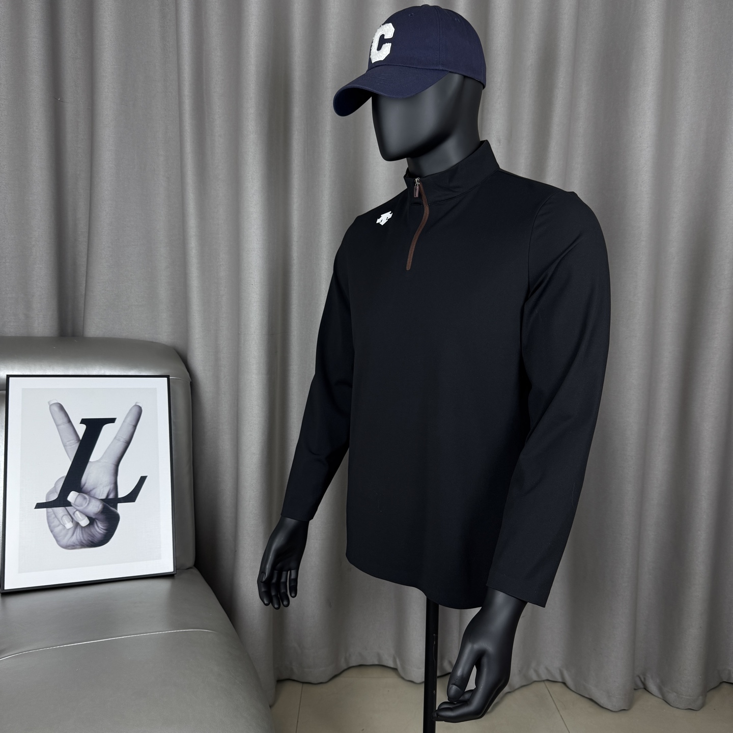 -面料采用定制科技功能性磨毛薄绒面料,耐洗不易变形,面料超级柔软亲肤,秋天可以单穿,冬天可以打底,半拉链立领设计好看又实用,保暖又不会闷热,右肩经典立体硅胶logo搭配纯色整体,低调大气,整件衣服做工走线工整严密,上身非常时尚且百搭,最大可穿200斤!