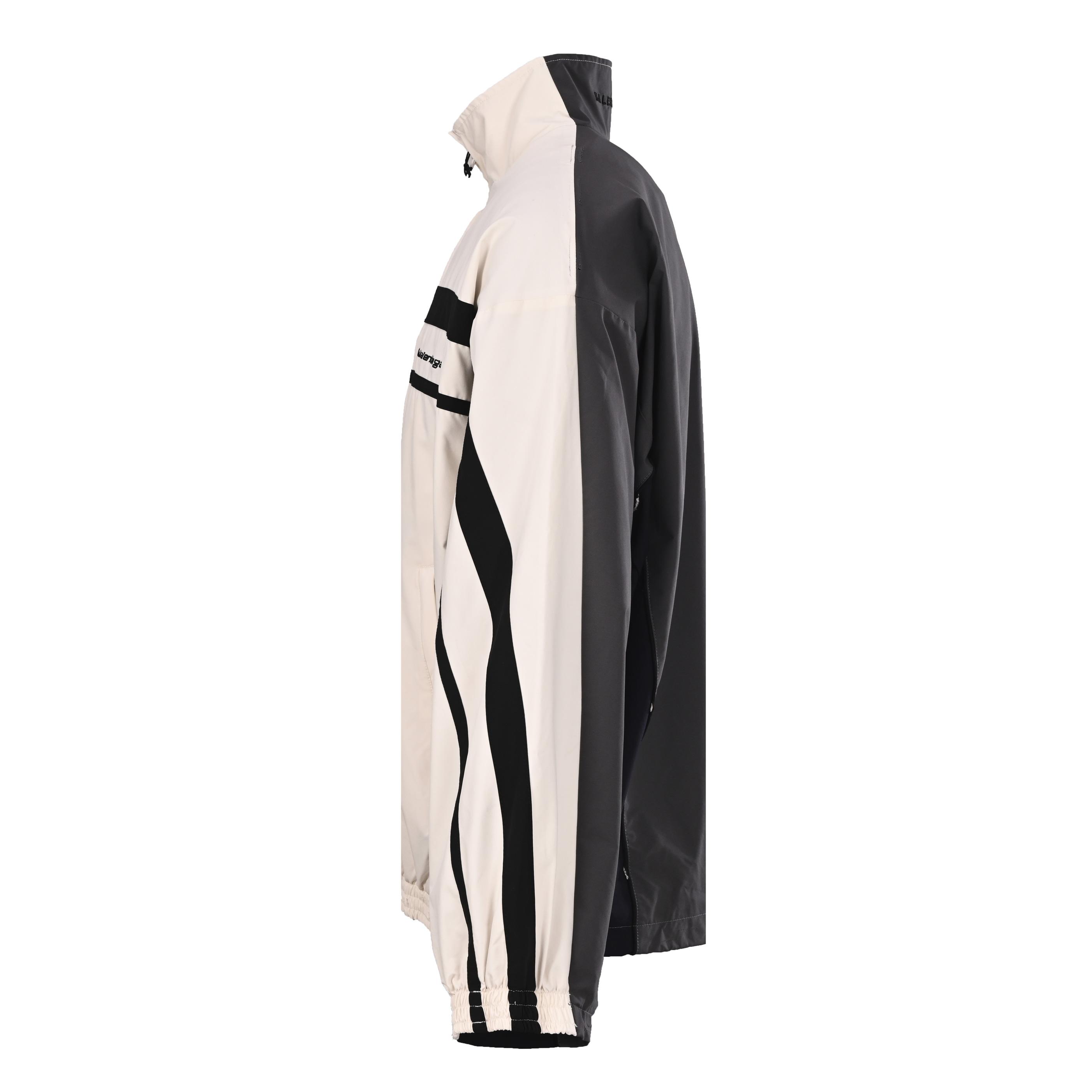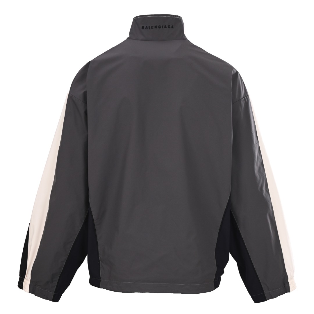 正品级💰510 BALENCIAGA巴黎世家BLCG 白灰双拼破坏运动套装外套 本产品选择高品质的PET切片聚酯纤维作为纺丝原料,确保其具有稳定的化学和物理性能。采用高速纺丝工艺,将PET切片通过熔融、过滤、喷丝板挤出等步骤制成POY(预取向丝)或FDY(全拉伸丝)。这些长丝产品具有高断裂强度、高弹性模量、优异的热定型性、良好的回弹性能以及耐热、耐光、耐腐蚀和易洗快干等特点。采用经典的水洗做旧工艺,经过精心打磨,呈现出独特的磨白效果,展现出历经时光沉淀的复古韵味。这种工艺通过特定的洗水方式处理,使成衣达到某种视觉和触觉效果,赋予衣物一种陈旧、磨损的感觉。男女同款 Size:44 46 48 50(XS-L)