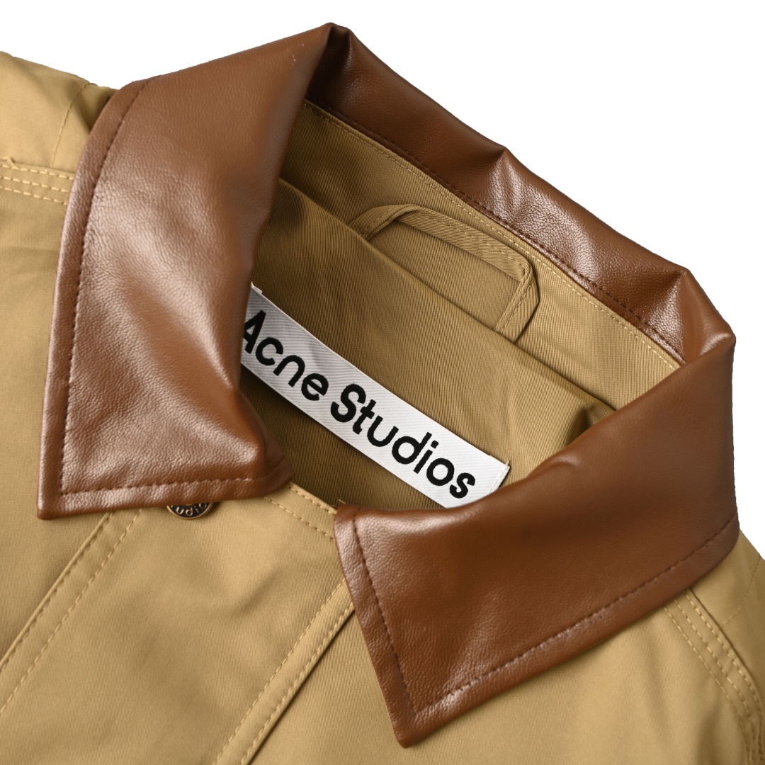 正品级💰480 ACNE STUDIOS 巴恩风拼皮领夹克外套 原版7800购于国内专柜,面料甄选180克全棉梭织风衣面料,采用缎纹编织双层结构并经过丝光处理,质感非常爽滑,内领和内门禁全部定制与原版一致PU皮材质面料,里料订织定染带小棉结纯棉面料,区分市面聚酯纤维版本,后背开模定制原版一致100%牛皮革徽标饰片,全衣做工全采用三本针工艺 品质牢靠,下摆螺纹全做内收以及螺纹缩褶工艺 Size:S-L