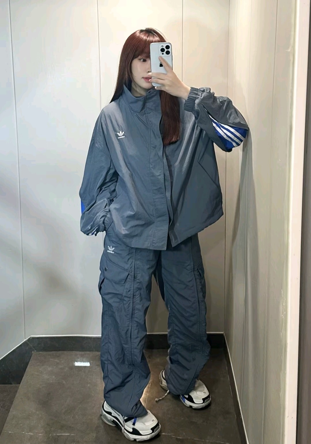 Adidas/阿迪达斯 originals x KR OP 联名款 三叶草解构拼接工装拉链长裤 上身参考