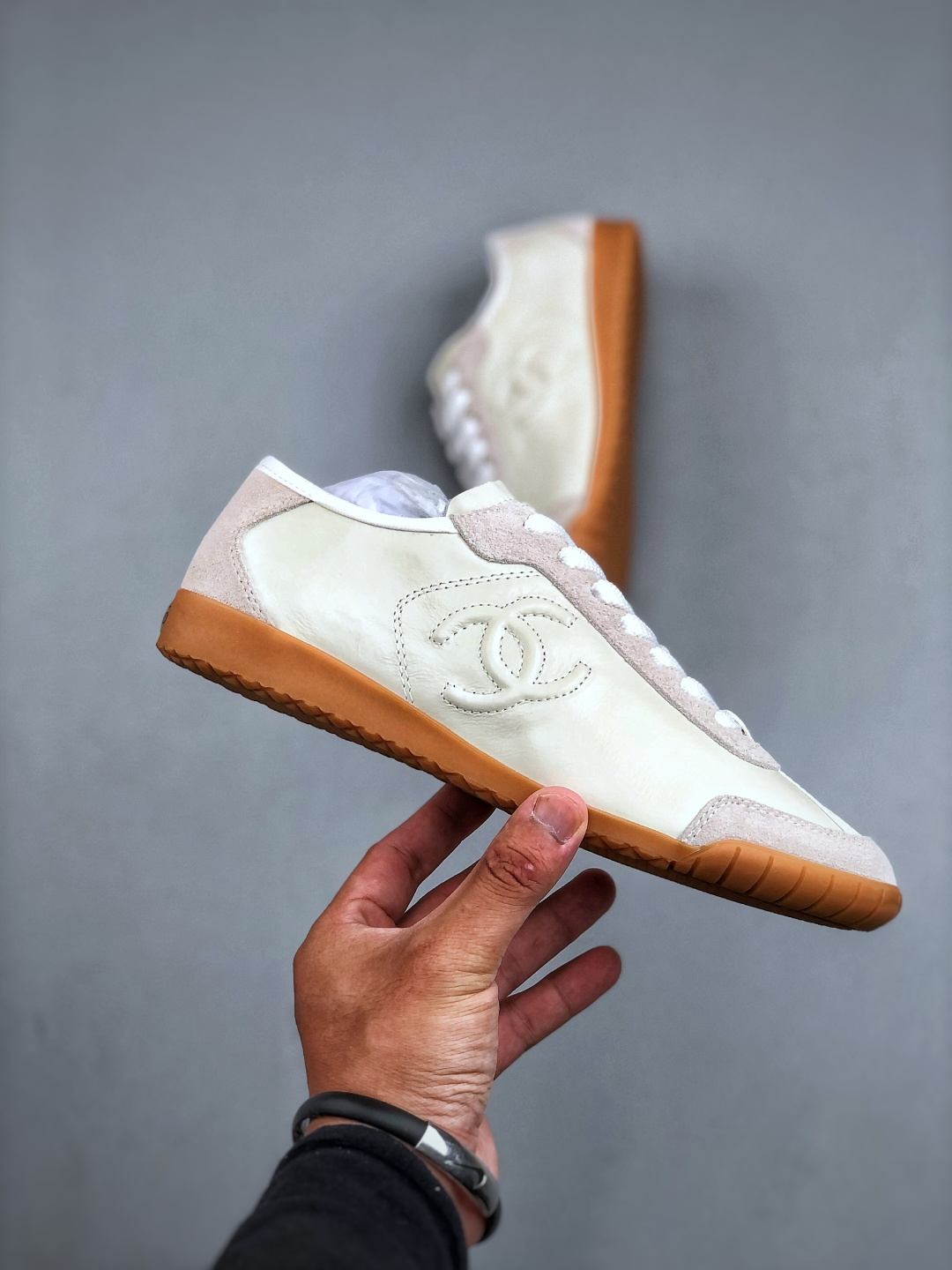 纯原💰560 CHANEL 香奈儿 早春新款王炸爆款 一眼心动的运动鞋!新款24B德训鞋风很大的德训鞋.谁能拒绝 百搭.实穿.还绝对有风格!这一季的新款更有设计感.拼接撞色的巧妙之处.点亮了整体 简单.又不简单的.低调穿搭也可以很有腔调!鞋面进口头层牛皮.不同纹理的裁片相结合.碰撞出层次 面料:进口羊皮 内里:元版内里 鞋底:原版开模鞋底 全套包装:35-40
