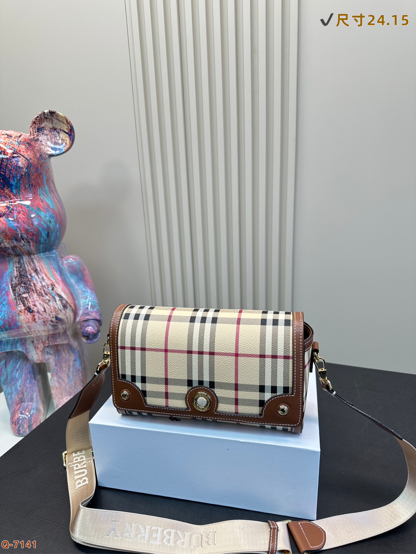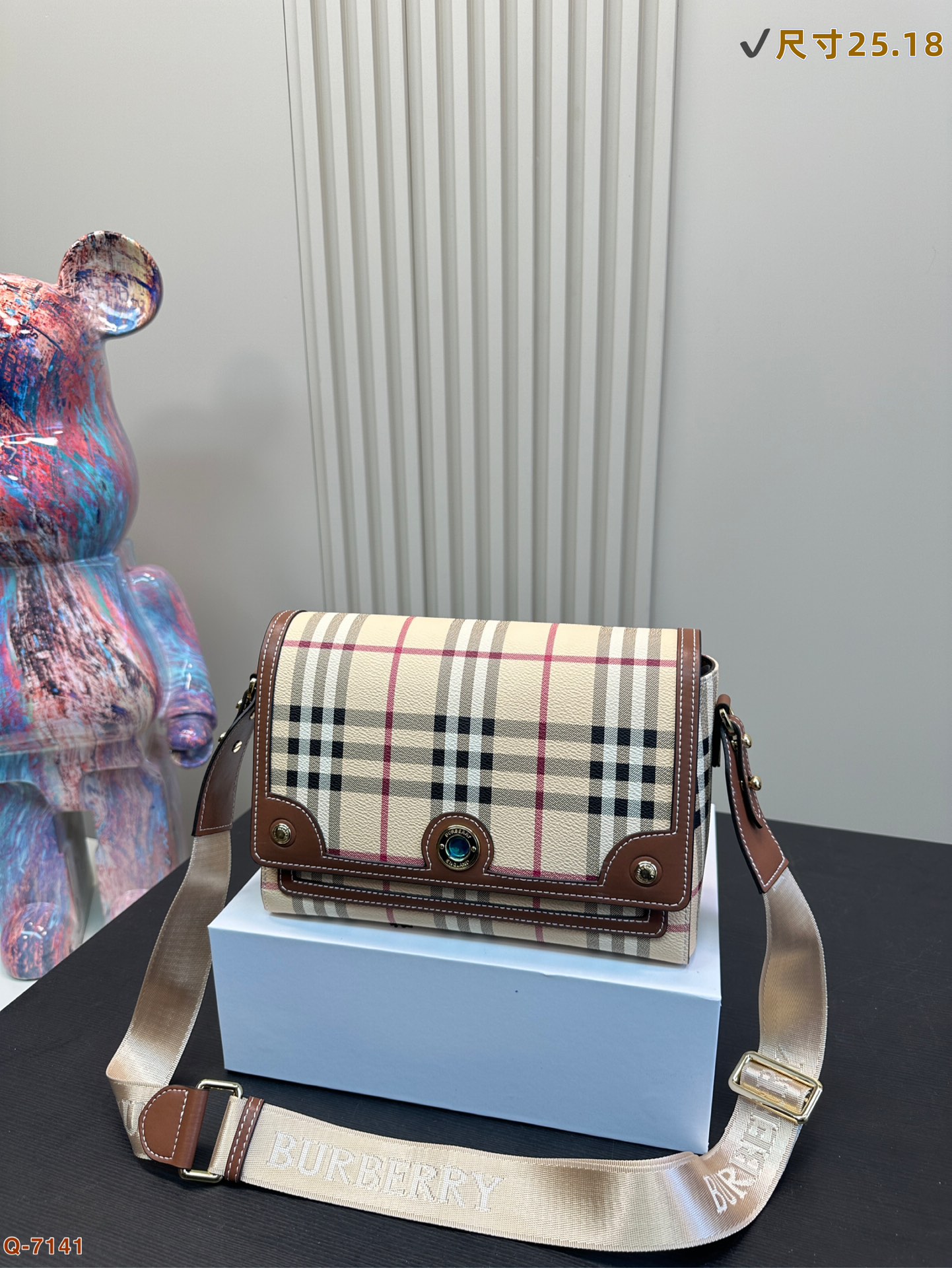 💰330💰340 配折叠盒 巴宝莉BURBERRY 经典格子邮差包 巴宝莉专柜最新款单肩斜挎包,实用耐久的面料 采特殊材质搭配牛皮🐂四季必备 单肩斜挎背两用款 尺寸 25.18/24.15