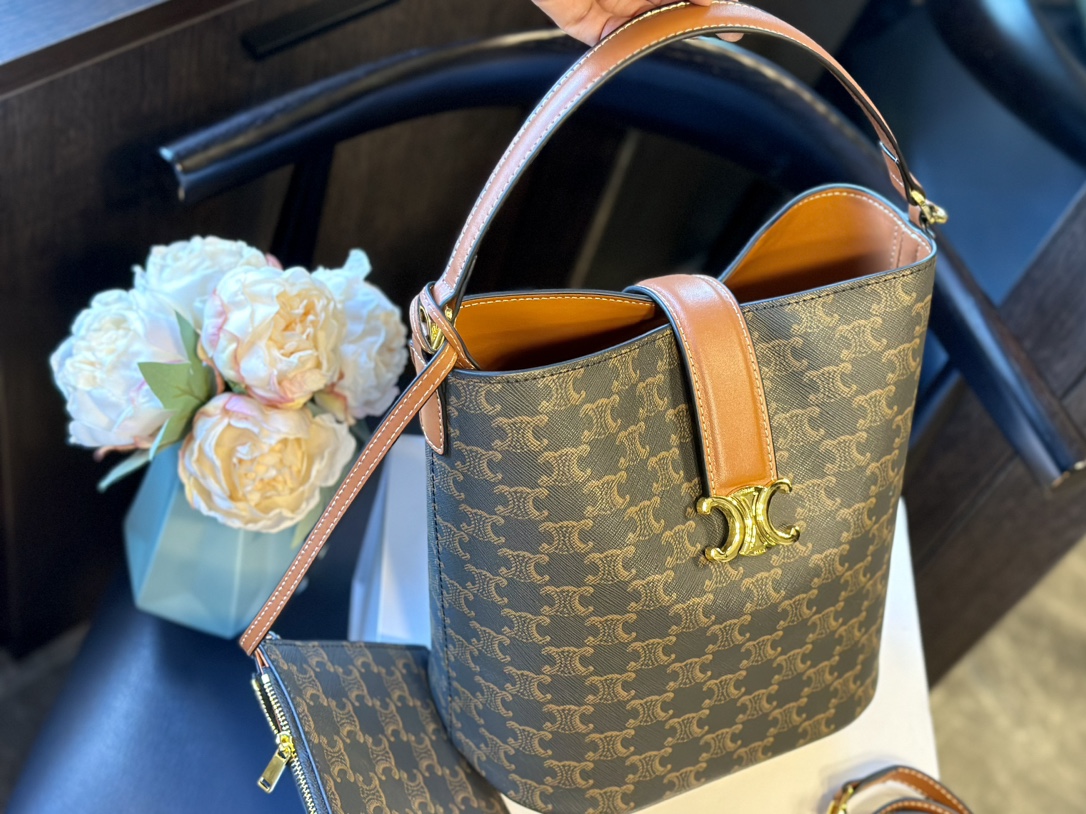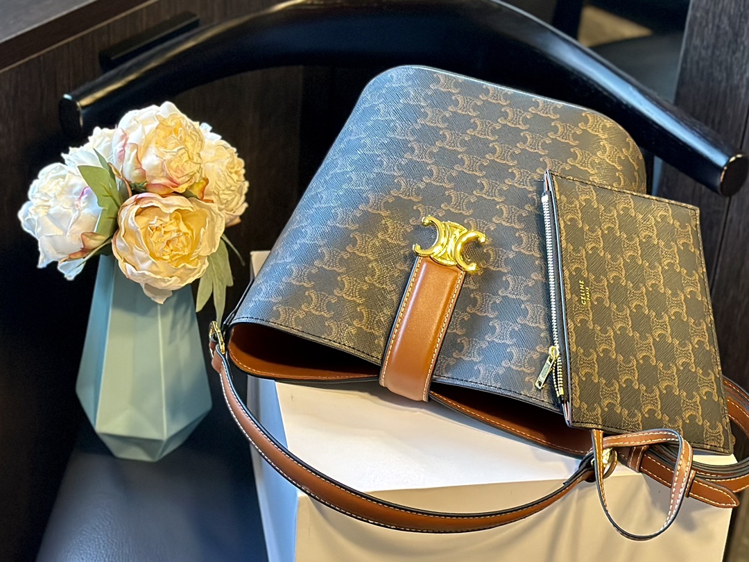 🐆💰360 折叠礼盒 Celine 24s Louise 水桶包 CELINE LOUISE中号光滑牛皮革手袋 24s新款 Louise水桶包AAA 之前种草16水桶包的宝子们看过来⑨ 今年这款Louise的锁扣加入了凯旋门元素 增强了这款水桶包的辨识度更加时尚精致 可满足手拎/斜挎/肩背三种需求 容量非常可观 日常通勤/出差/办公完全无压力 喜欢的宝子放心冲~总 牛牛皮革,羊皮革村里,金色饰面,手提、肩背和斜挎,皮革翻盖,配TRIOM💰HE磁扣,1个内侧可拆卸拉链口 袋,可拆卸和可调节肩带c! 尺寸23 23cm