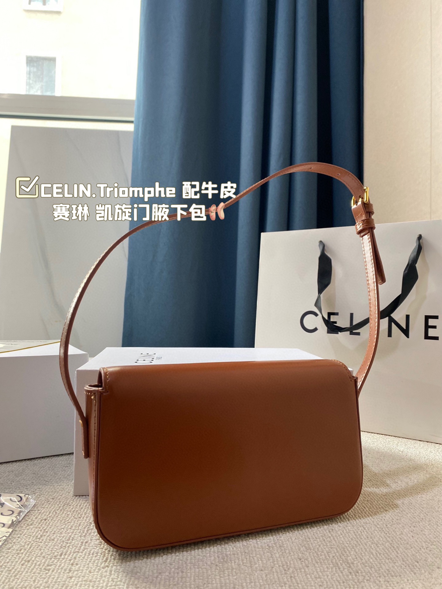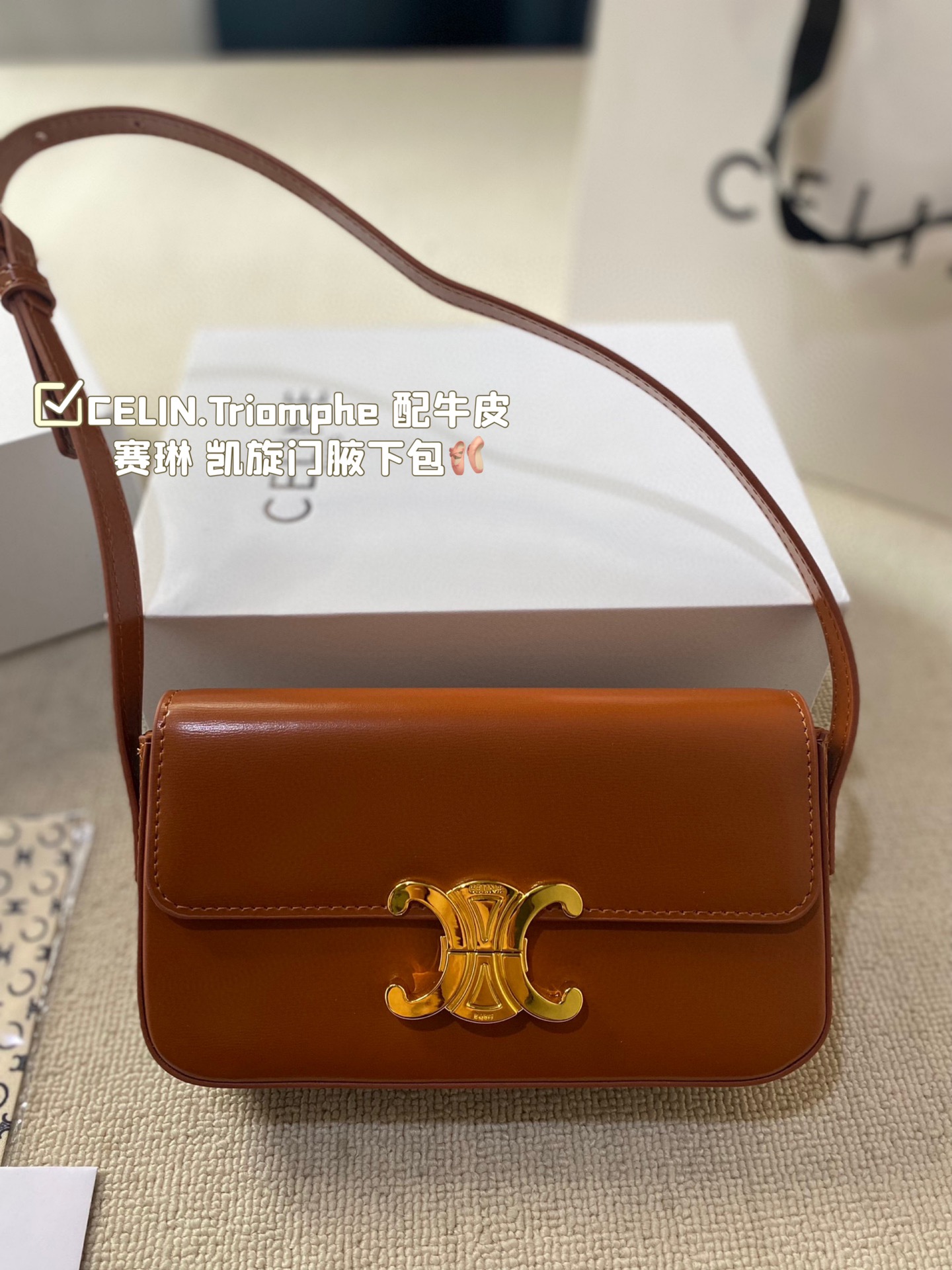💰325 配盒 CELIN.Triom💰he 配牛皮 赛琳最新款凯旋门腋下包 长方形的轮廓复古感满满~ 随便穿什么搭配这个包都是高级风 尺寸:20.10cm