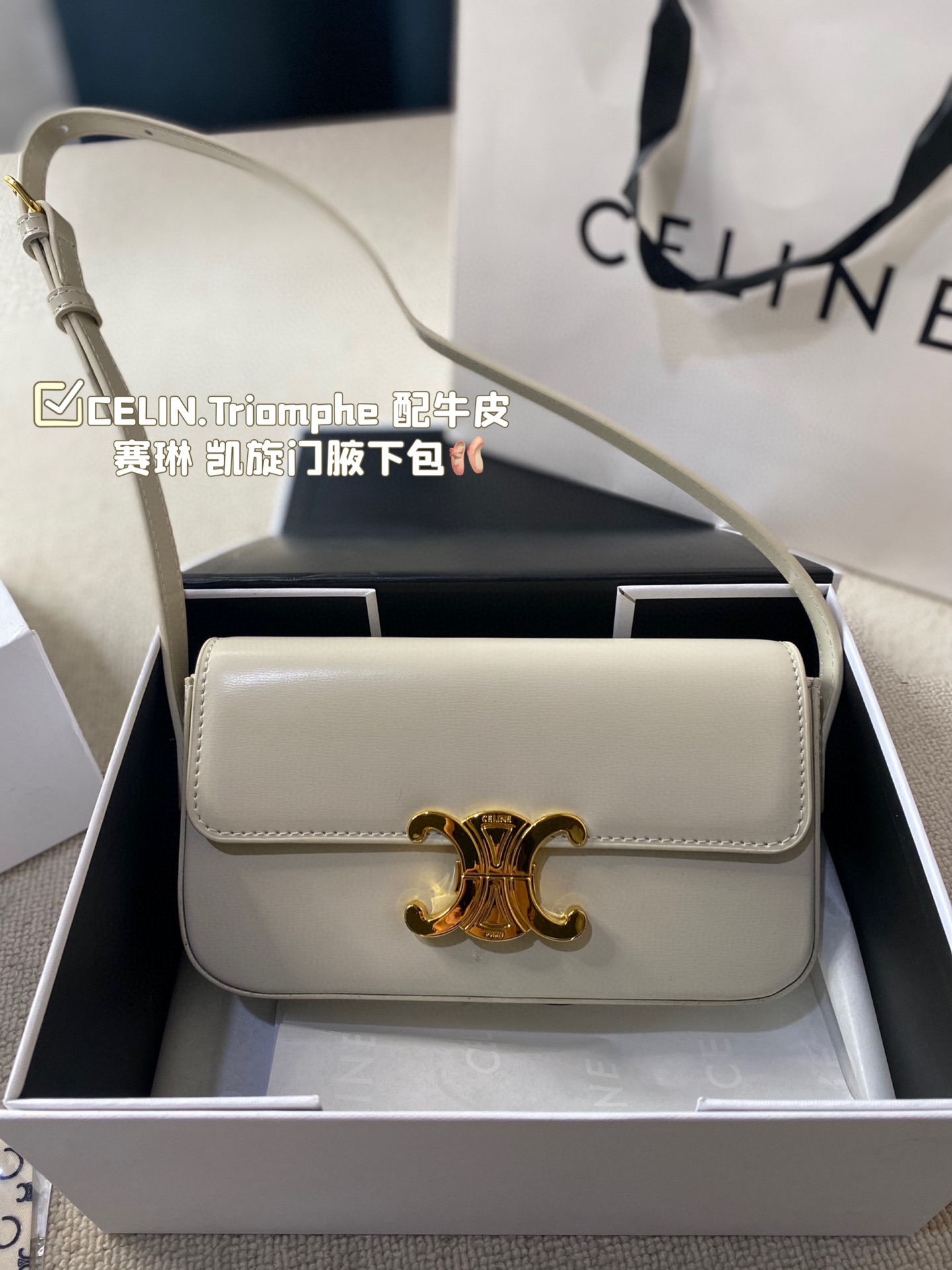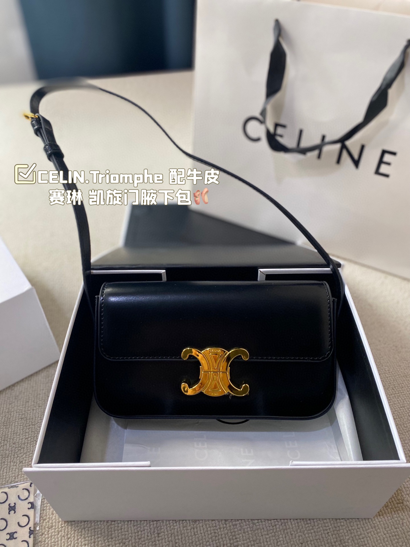 💰325 配盒 CELIN.Triom💰he 配牛皮 赛琳最新款凯旋门腋下包 长方形的轮廓复古感满满~ 随便穿什么搭配这个包都是高级风 尺寸:20.10cm