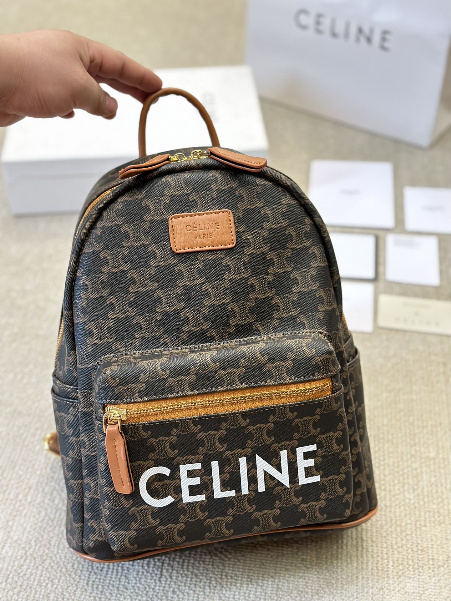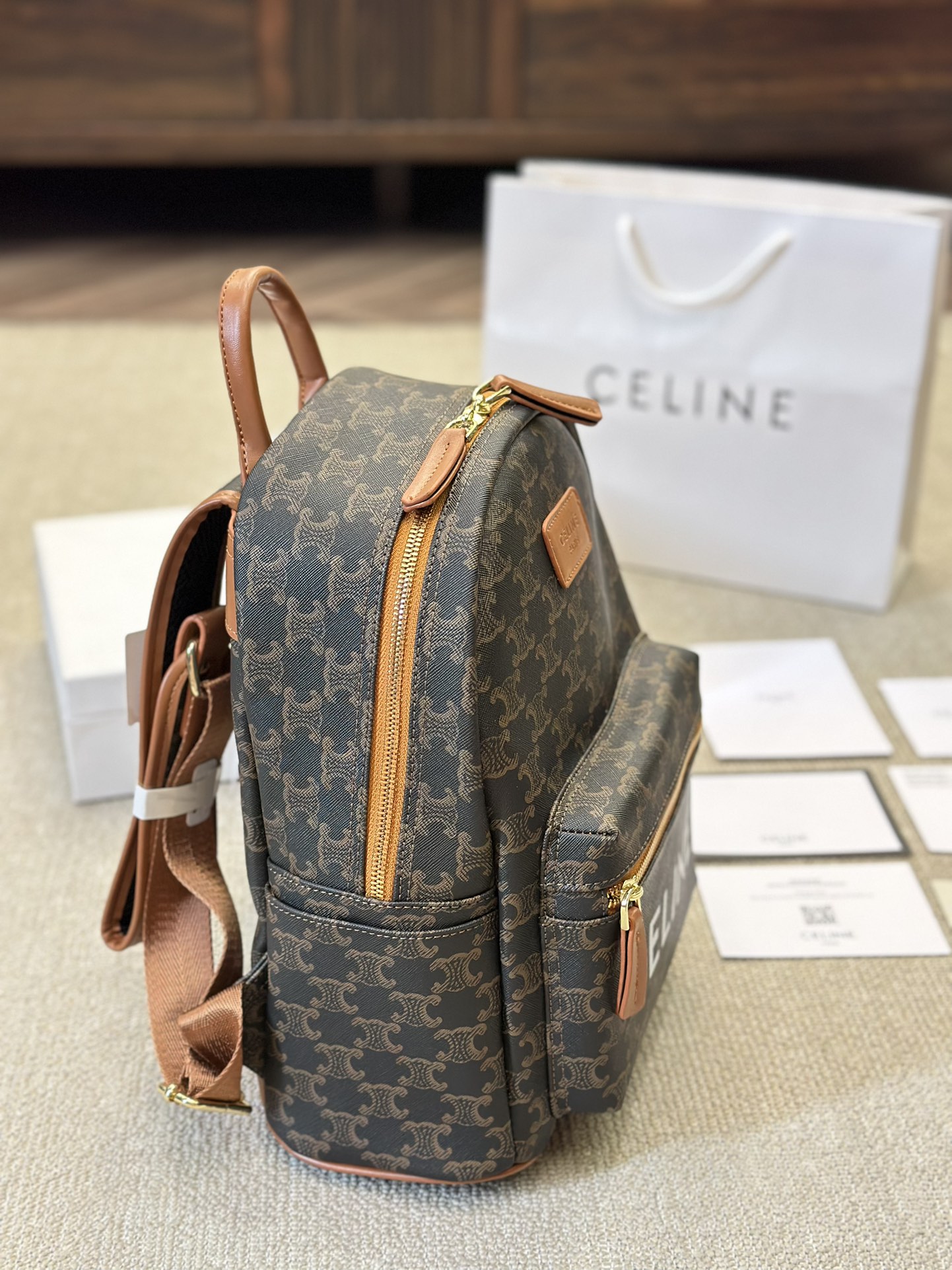 💰325 celine 老花双肩包新品 延续凯旋门 复古斜挎 , 耐看经典印花一点都不老套 尺寸 24 30cm