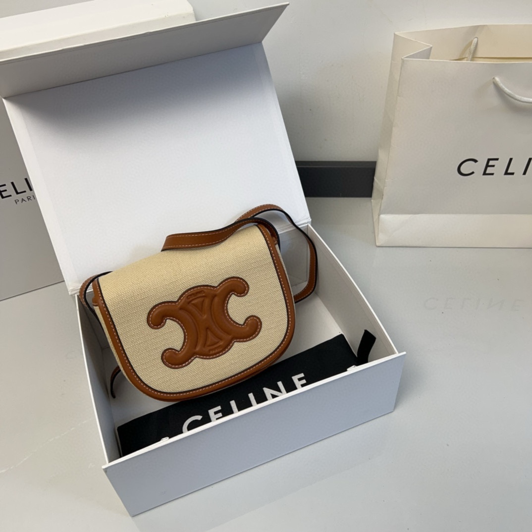 (折叠盒⚠️)💰370 Celine帆布马鞍包 自重轻休闲感十足 永远的百搭单品 上身绝美 小仙女值得拥有! 尺寸:16cm