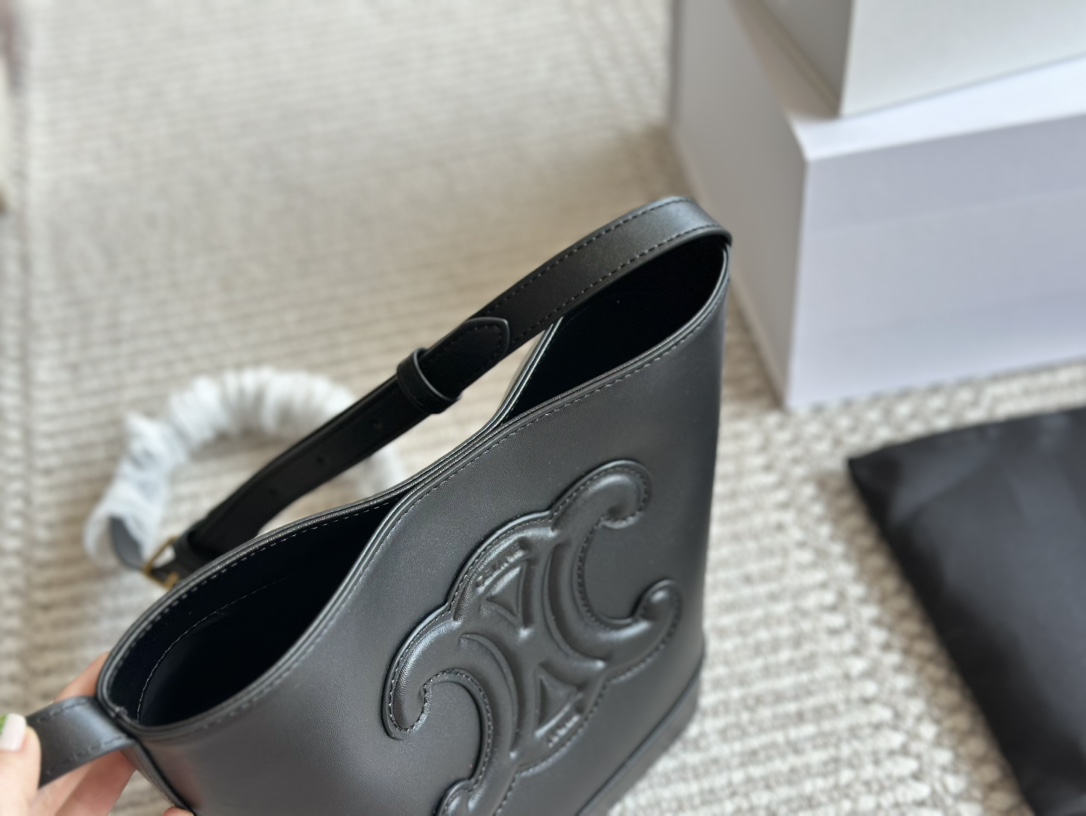 ¥ 330 牛皮折叠盒包装 Celine凯旋] CUIR TRIOM💰HE牛皮水桶包2022s春夏新品 CUIR TRIOM💰HE小号光滑牛皮水桶包 延续经典,立体的凯旋门门标志焕然一新,低调简约,超 可斜挎和肩背、搭配可调节皮革肩带#凯旋门#Celine尺寸:22cm