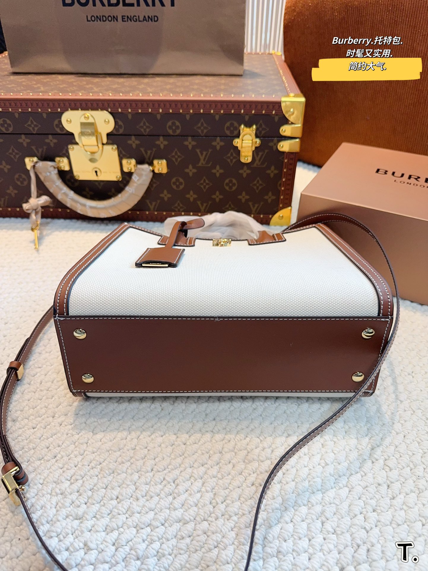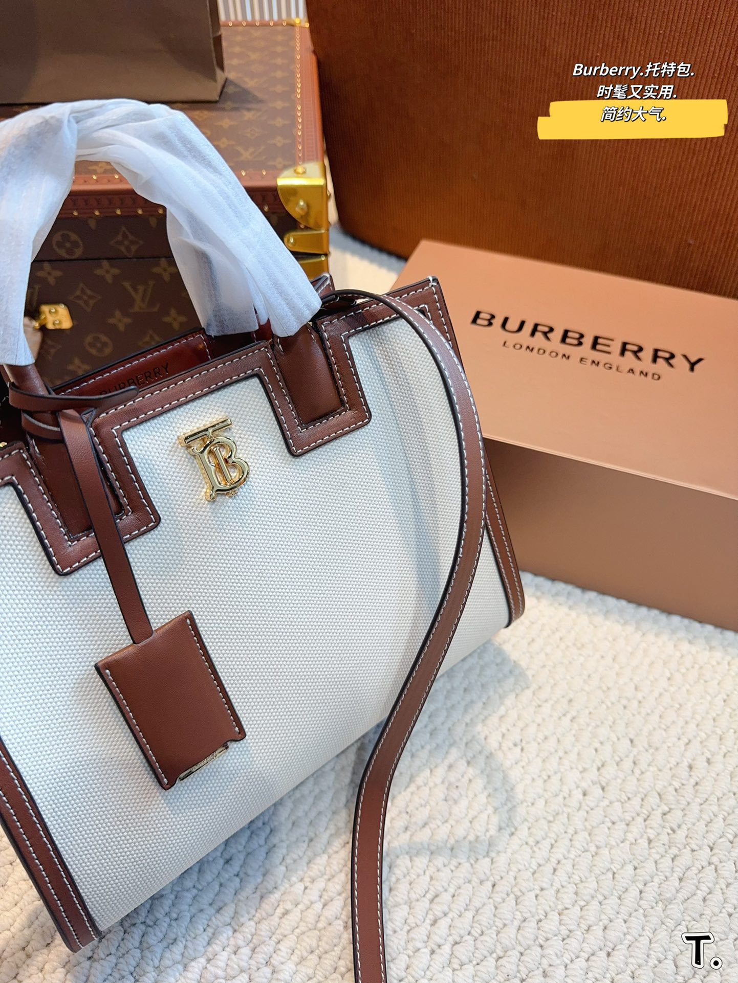 💰400 Burberry 巴宝莉托特包 horseferry格纹帆布拼接小牛皮简直必备款 上身真的很好看经典气质款 日常出行 容量很大 尺寸: 26*12*20cm