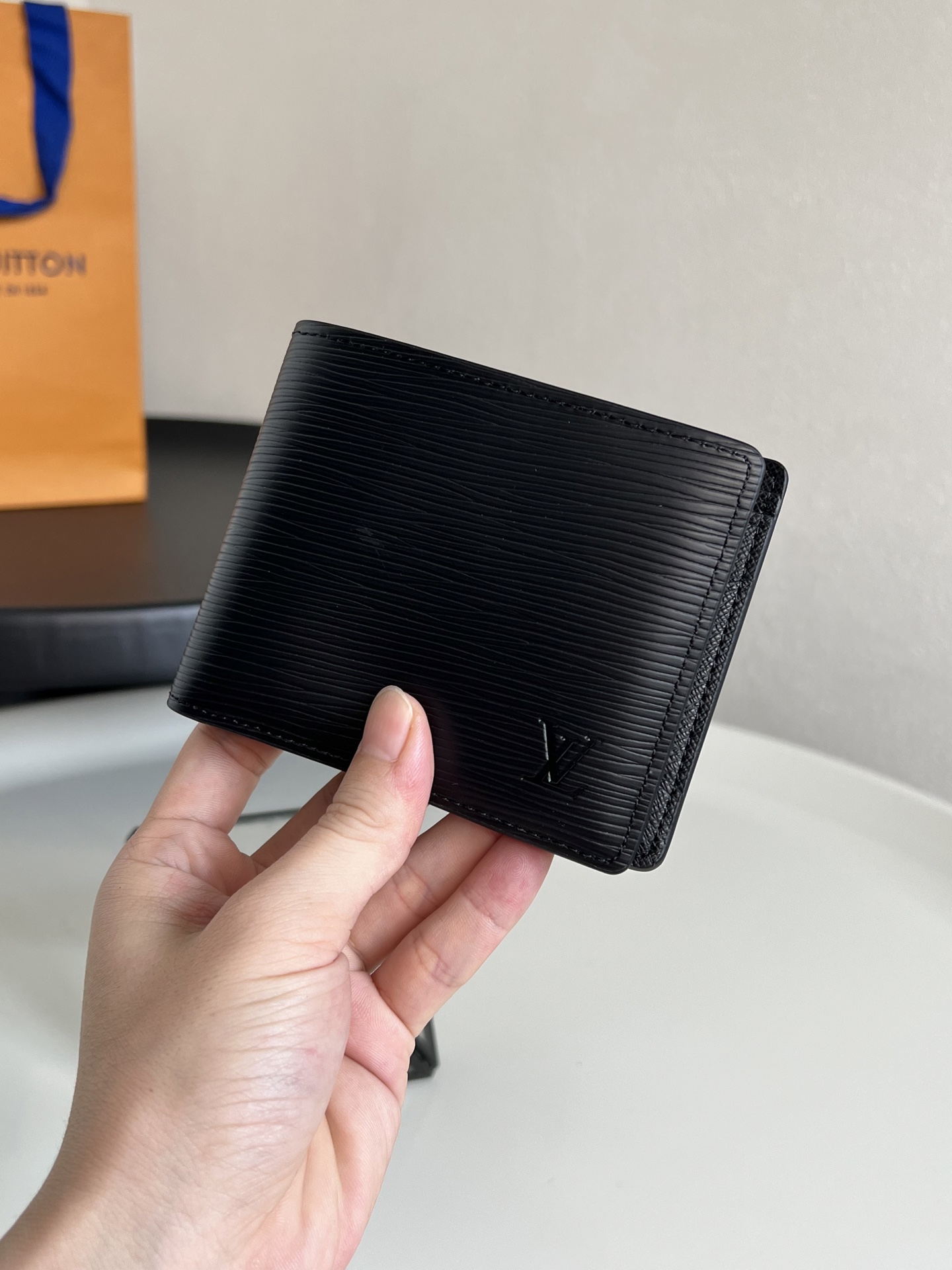 原单芯片版💕 M60895 黑色水波纹 这款Multiple皮夹采用Damier帆布制造,可收纳信用卡、纸币、票据等。尺寸:12 x 9 cm (长 x 高) - Damier帆布,巧克力色光面皮革衬里- 两面均设有信用卡夹层,一面三个,一面两个- 两个纸币夹层- 两个侧面夹层可放。