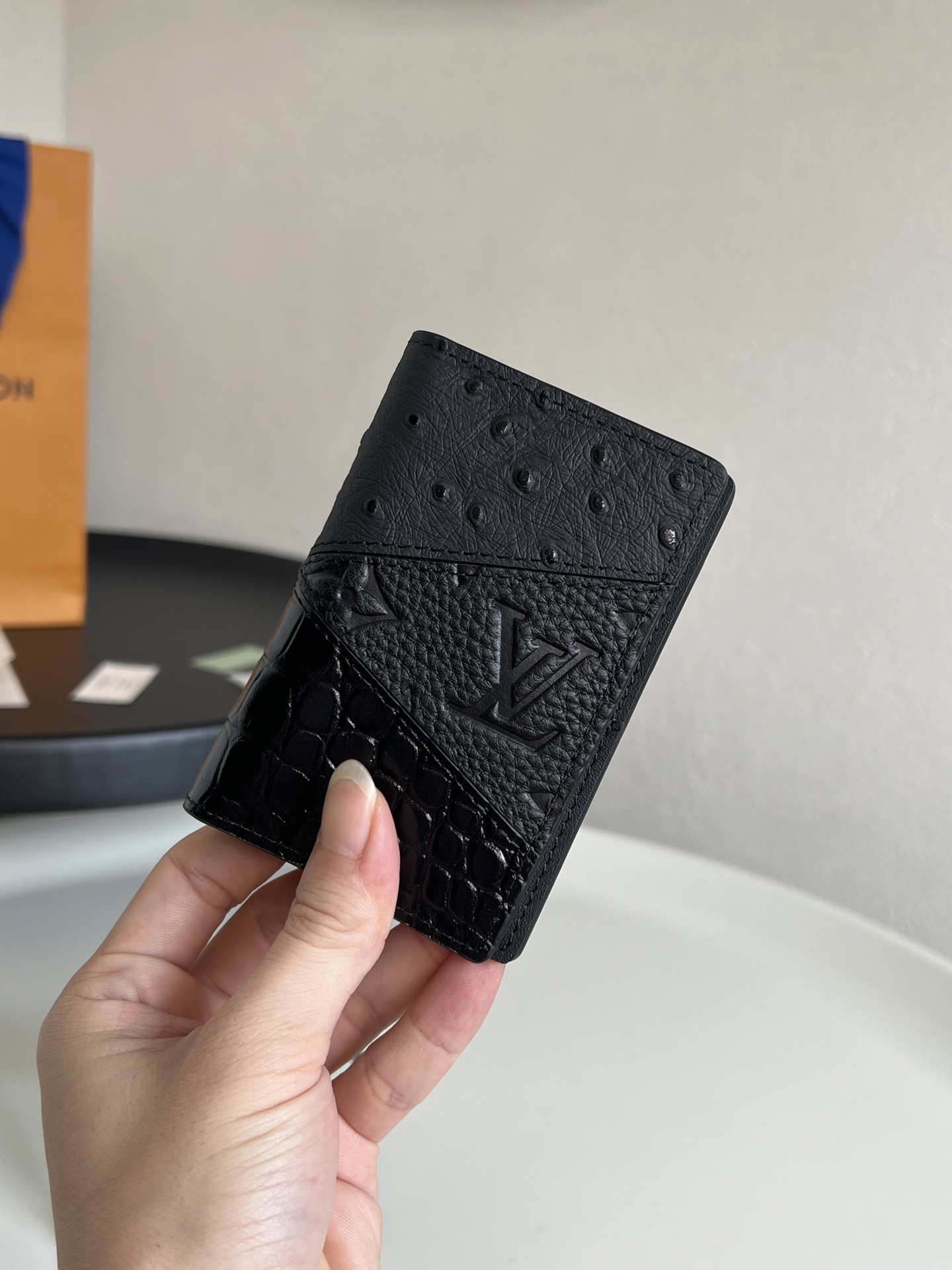 原单芯片版💕顶级原单 M84690黑色 全皮卡包钱包系列 口袋钱夹 這款袋裝萬用錢包外層以三款奢華物料縫製,包括路易威登經典的Monogram Eclipse帆布、珍異鱷魚皮及駝鳥皮,內層設計纖薄精巧,有足夠空間放置紙、信用卡及紙張,可輕易收納入任何衣物口袋,多用途和多合一的設計是理想的男士配飾。7.5 x 11.1 x 1 厘米