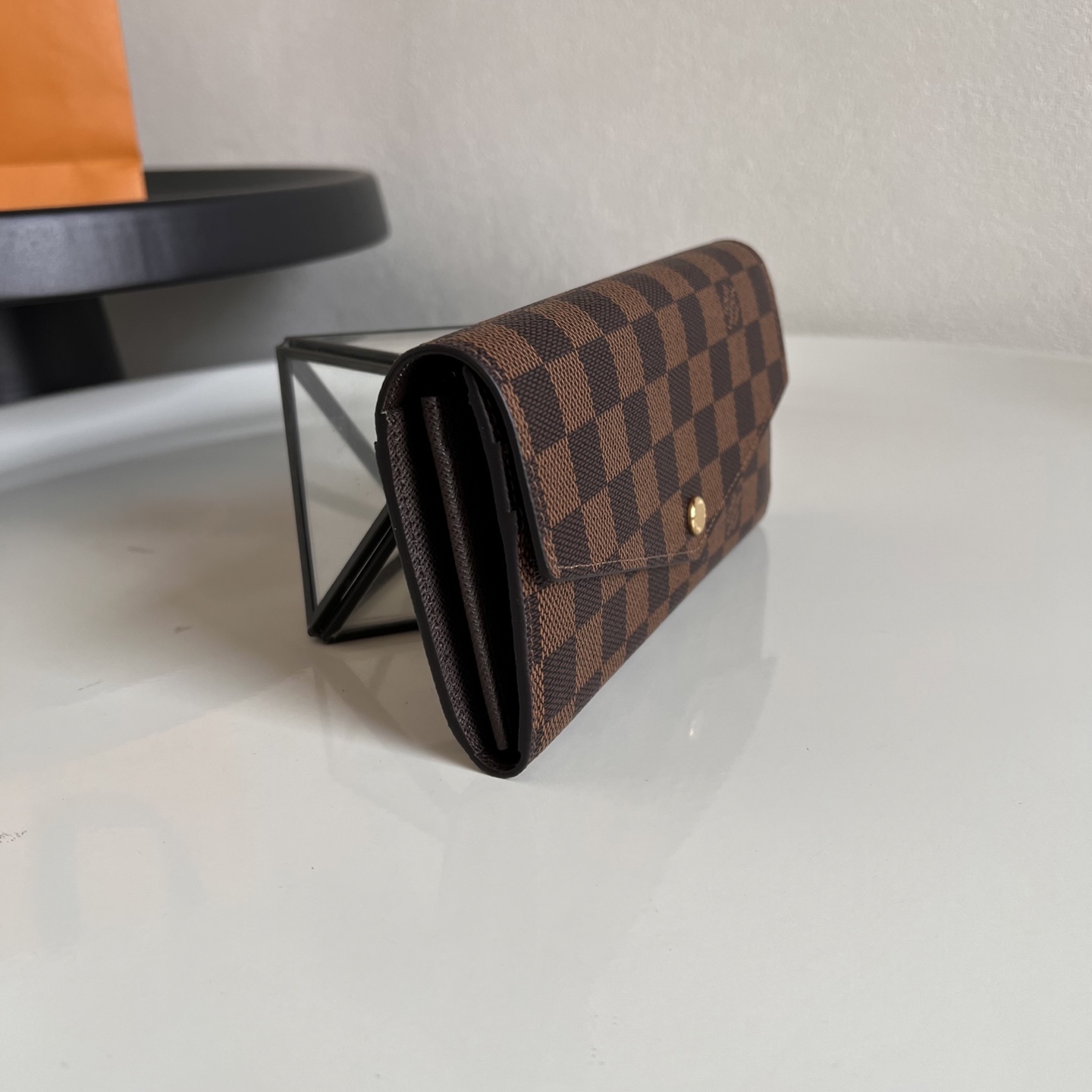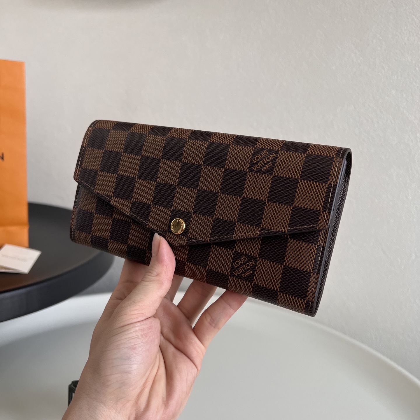原单芯片版💕 N60114啡格深啡 这款信封式钱夹以优雅的 Monogram 帆布制成,内部设计精巧独特,拥有各种口袋和信用卡槽。19.0x 10.5x 2.5 cm (长x 高x 宽) - 19 x 9.5 x 1 厘米- 16个信用卡槽、2个大号隔层用于存放纸币、拉链零钱包- 小牛皮内衬- 闪亮的金色金属配件