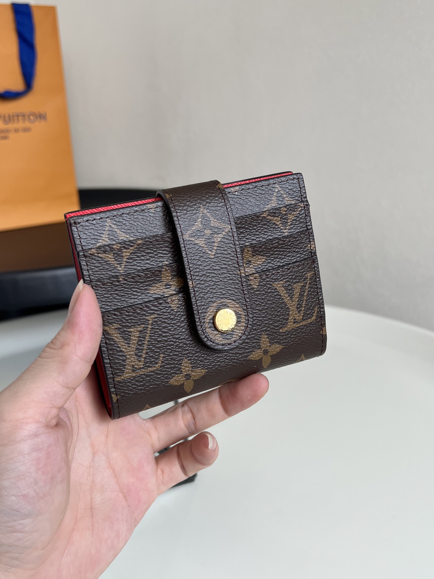 原单芯片版💕 顶级原单 M61731红色 多功能卡包 此款钱夹采用柔软的Monogram 帆布制成!衬以颜色鲜艳的內衬!气质极为优雅!轻便!零钱袋的设计造型更为实用!带12个卡槽 正面带固定五金按扣,尺寸: 12.0 x 10.0 cm。