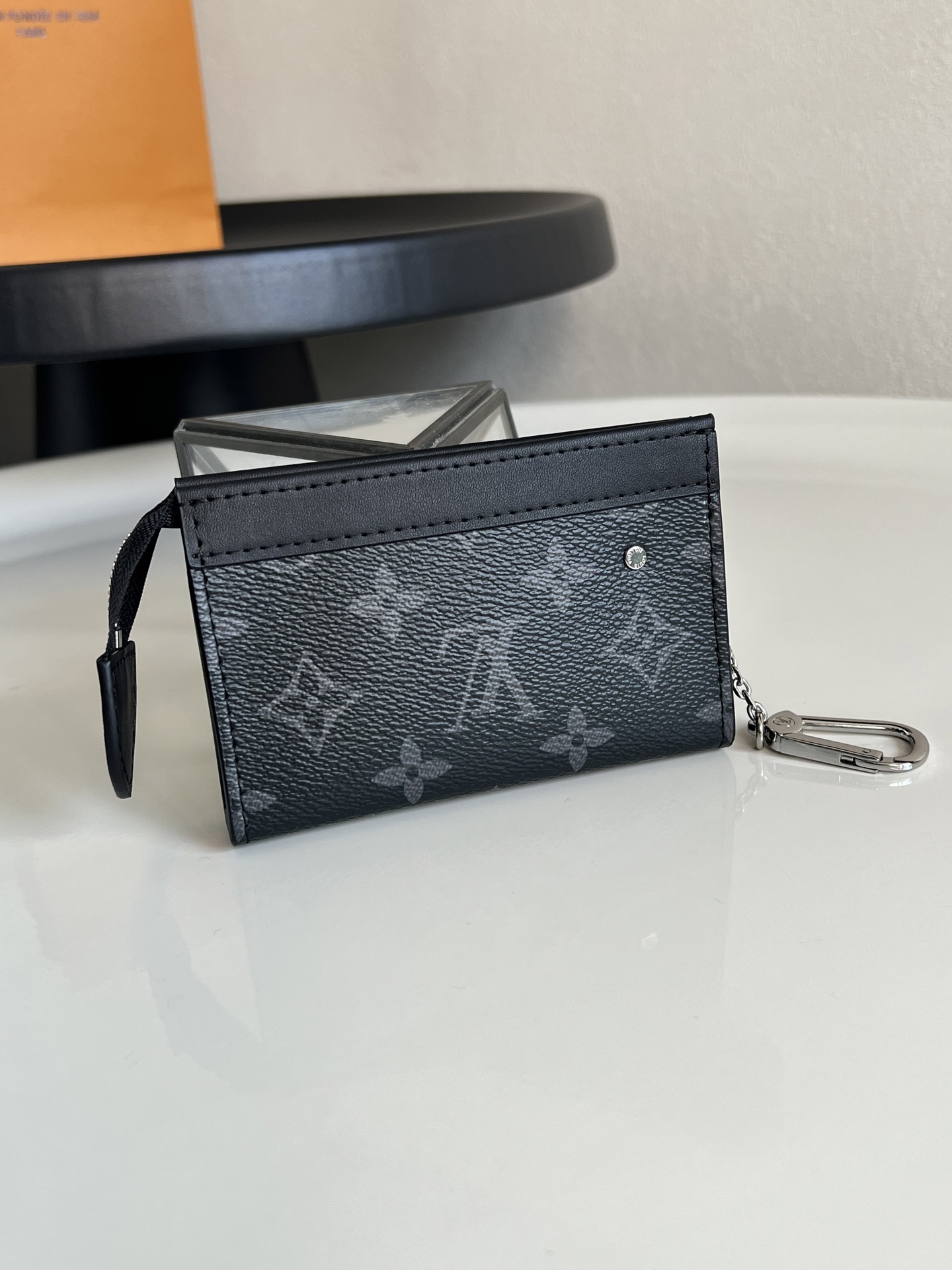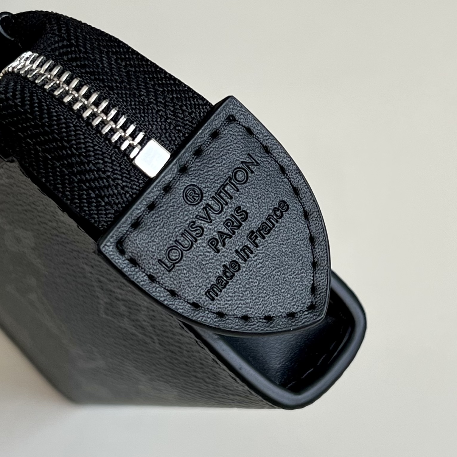 原单芯片版💕 顶级原单 M82776黑花 Monogram Eclipse帆布上装饰了牛皮皮革的“Pochette Cre Voyage”。可以安全收纳硬币、折叠纸币、卡、钥匙等,拉链风格的开口也很有魅力。也可以安装在很多路易威登包包内饰上的D环上使用。尺寸:12 x 7.5 x 3 cm